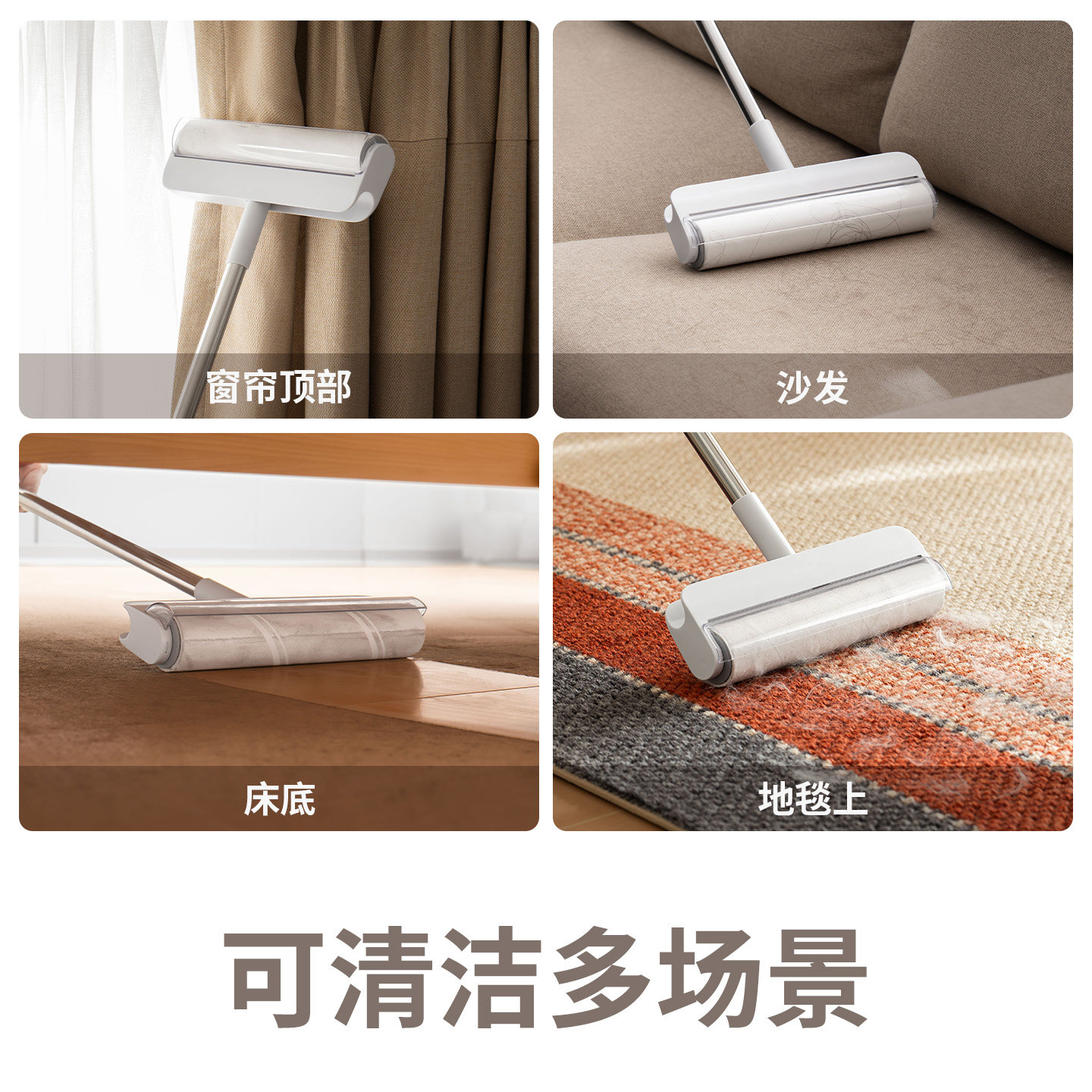 懒角落粘毛器滚筒长杆滚刷床上地毯清洁粘头发拖把床单伸缩替换装