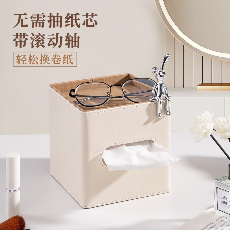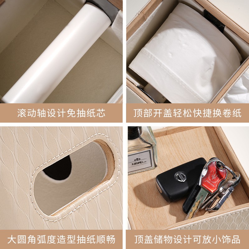 简约皮质卷纸筒 家用客厅卫生间厕所圆形抽纸巾盒 创意卷筒纸盒