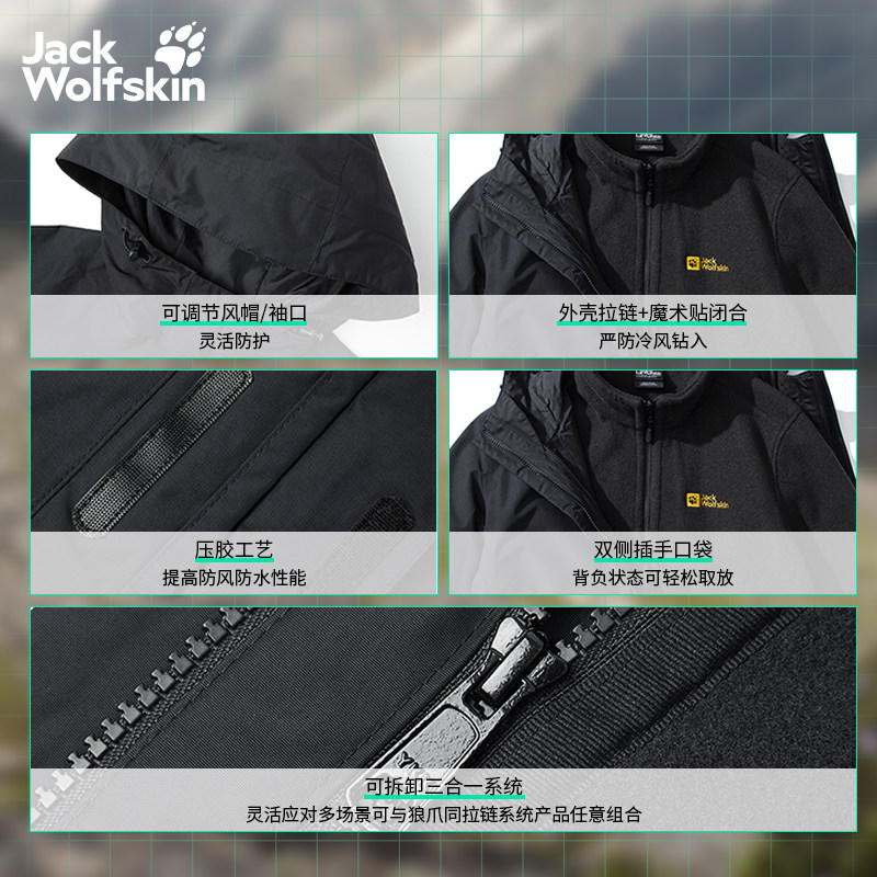 JackWolfskin狼爪25秋冬新款CRUSH'IN情侣三合一冲锋衣5012776