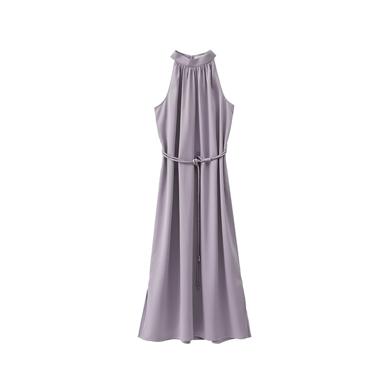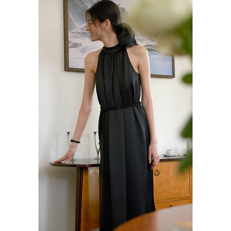popchrio◆法式挂脖宽松无袖吊带背心连衣裙本布腰带中长款裙子女