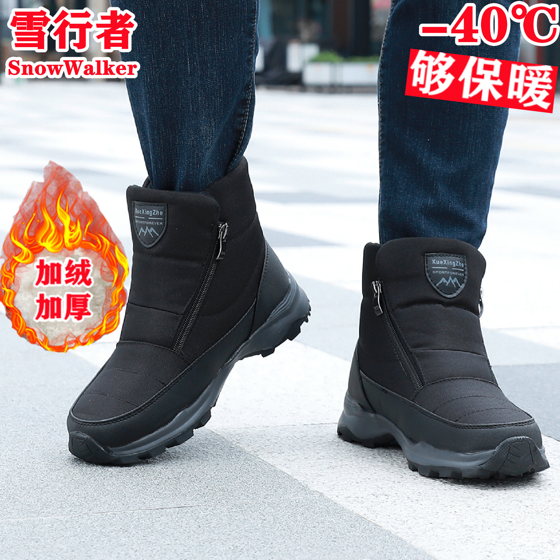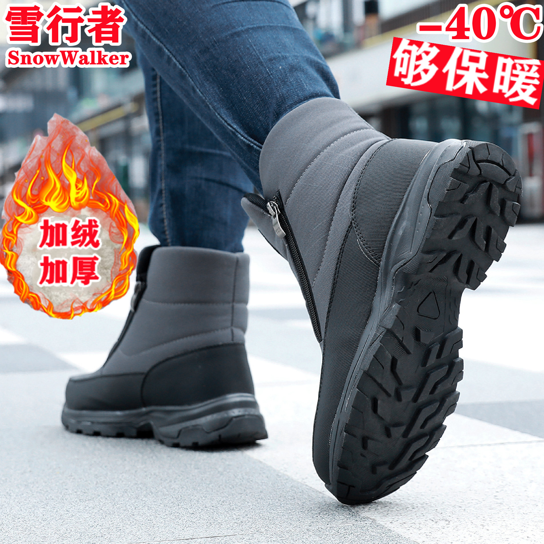 东北高筒大棉靴冬季防水防滑男靴高帮加厚绒休闲户外登山雪地靴男