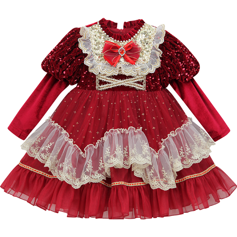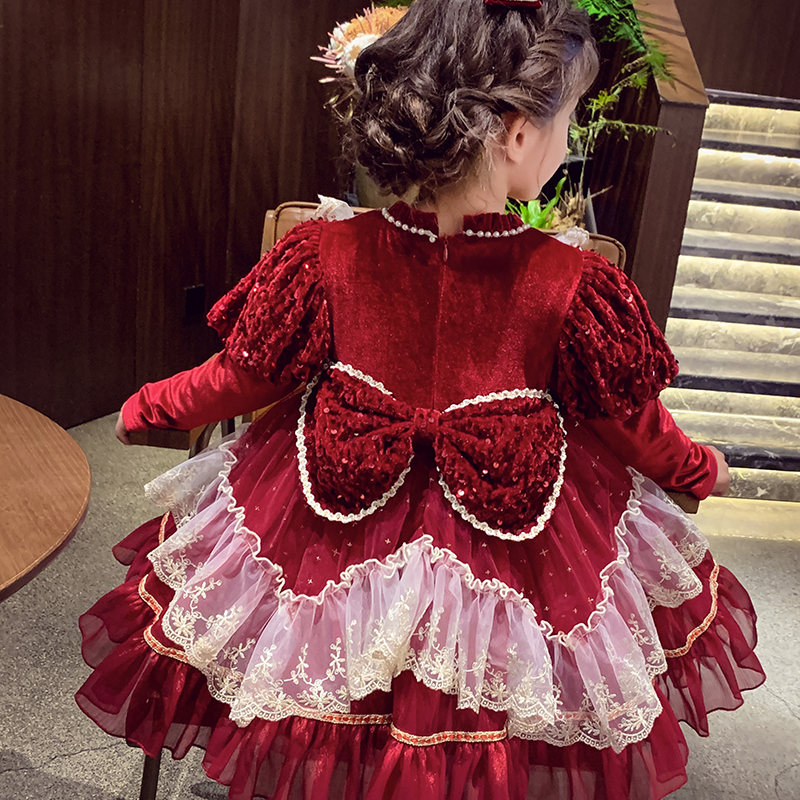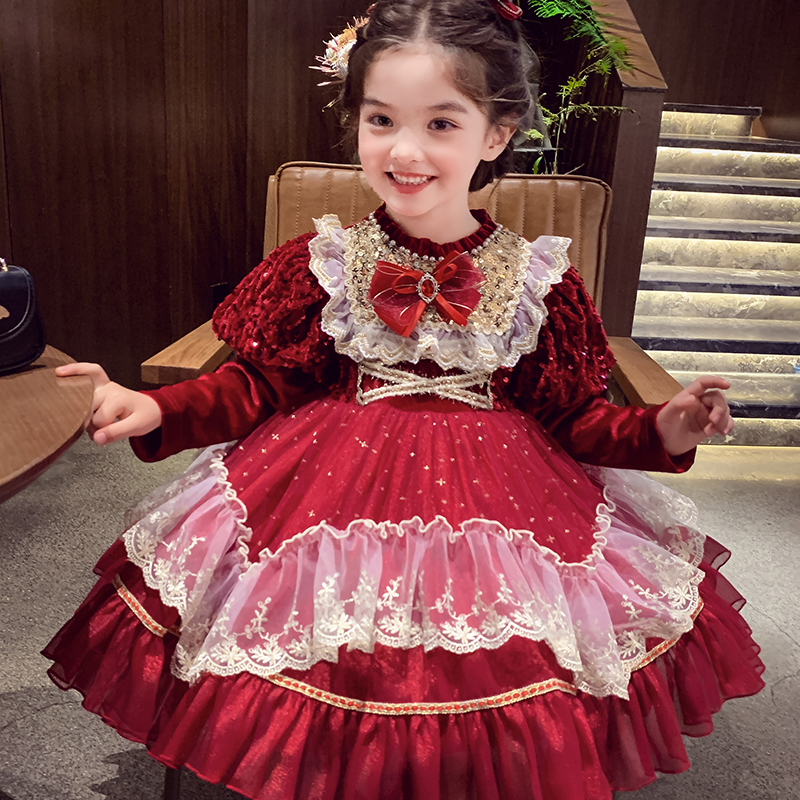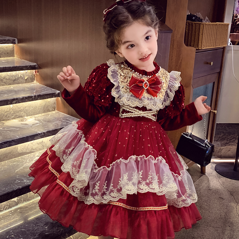 女童洛丽塔公主裙冬装新款洋气儿童加绒连衣裙女孩丝绒圣诞裙