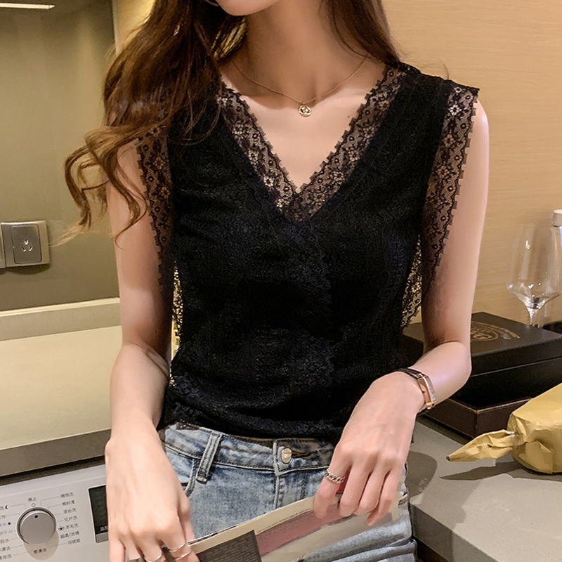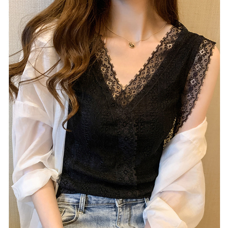 蕾丝吊带背心女内搭春秋新款大码外穿白色无袖打底衫欧货小众上衣