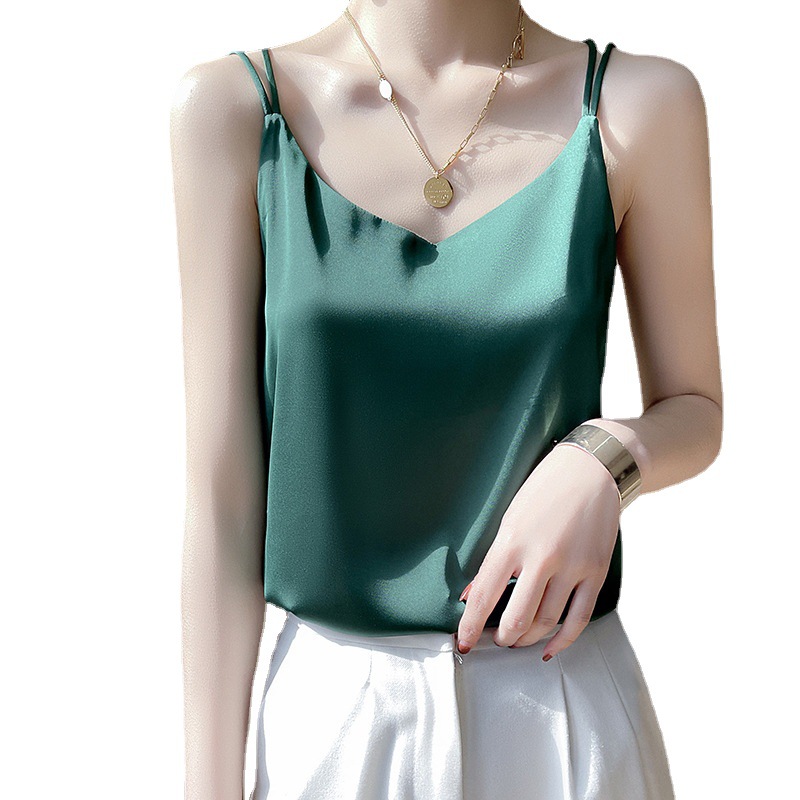 露背缎面吊带背心女内搭设计感小众夏美背外穿桑蚕丝背心真丝上衣