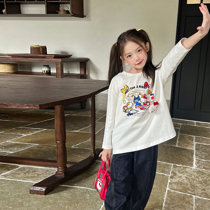 栀了成长记童装女童长袖宽松打底衫秋儿童宝宝卡通印花蝴蝶结T恤