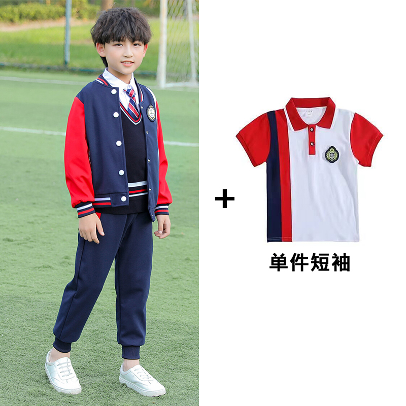 绿色春秋款小学生校服运动套装幼儿园园服全棉红色短袖三件套夏季