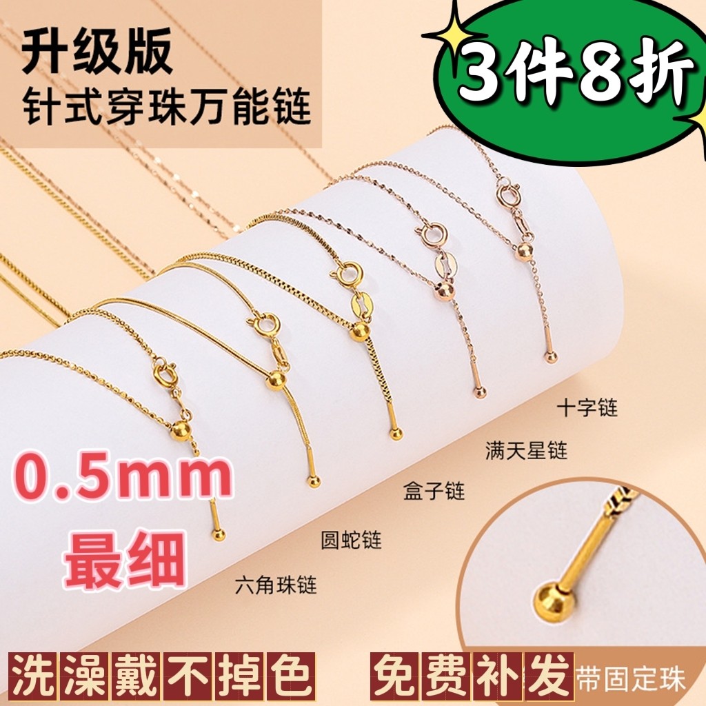 最细很细钛钢防丢万能手链镀18K金螺丝珠手链针式穿珠带珠万能链