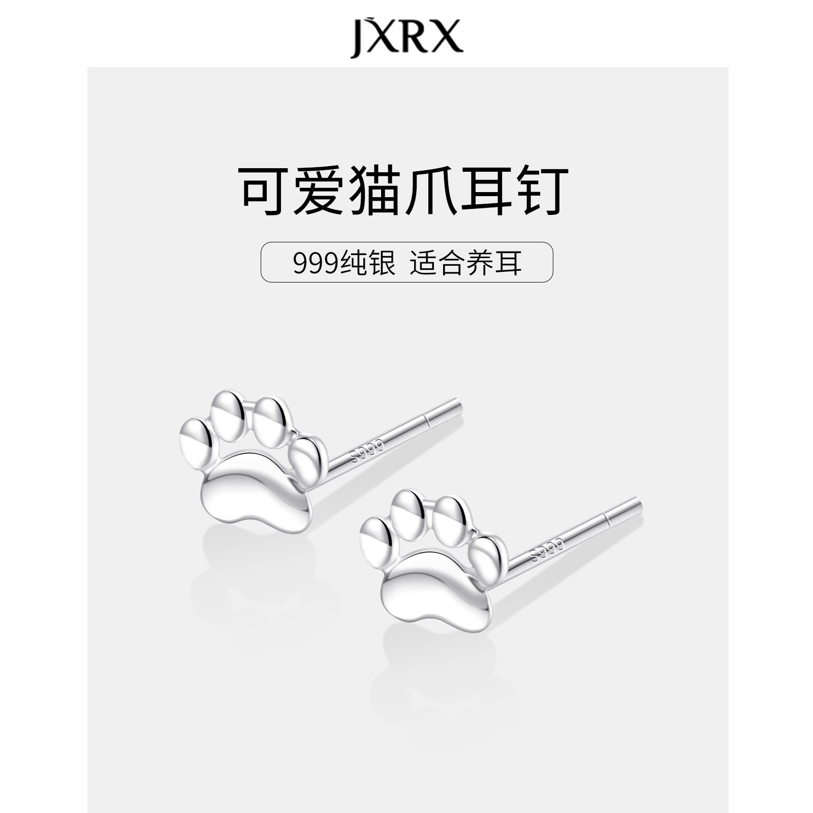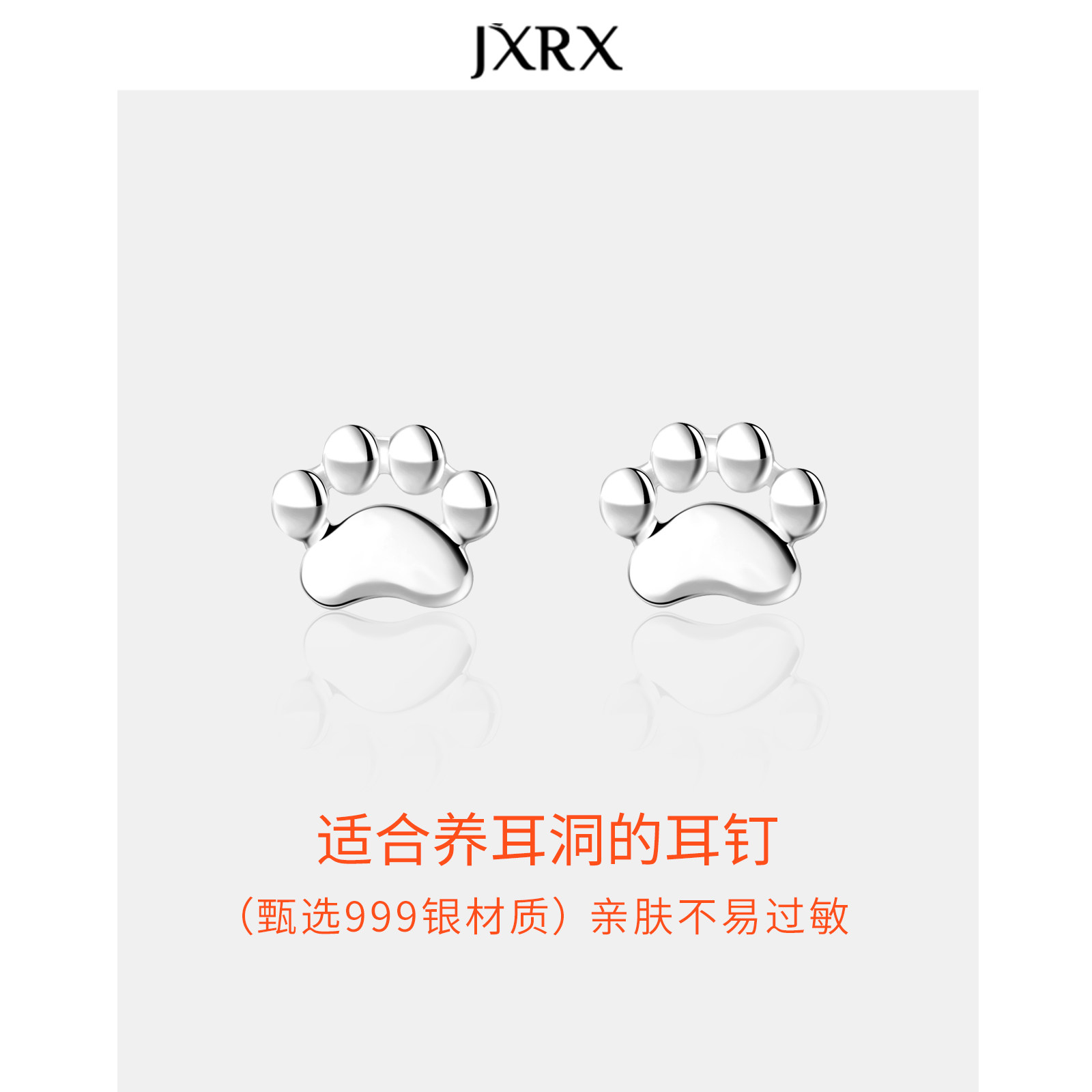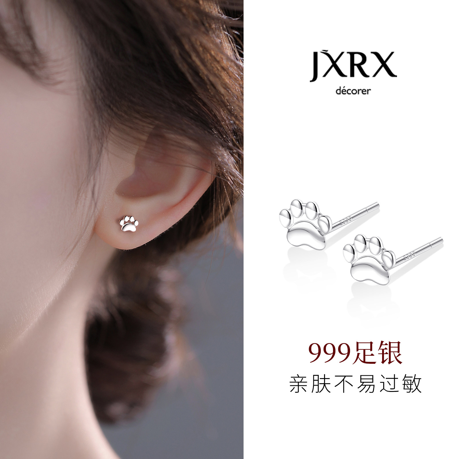 JXRXs999纯银猫爪印耳钉女设计感小众养耳洞耳环小巧精致足银耳饰