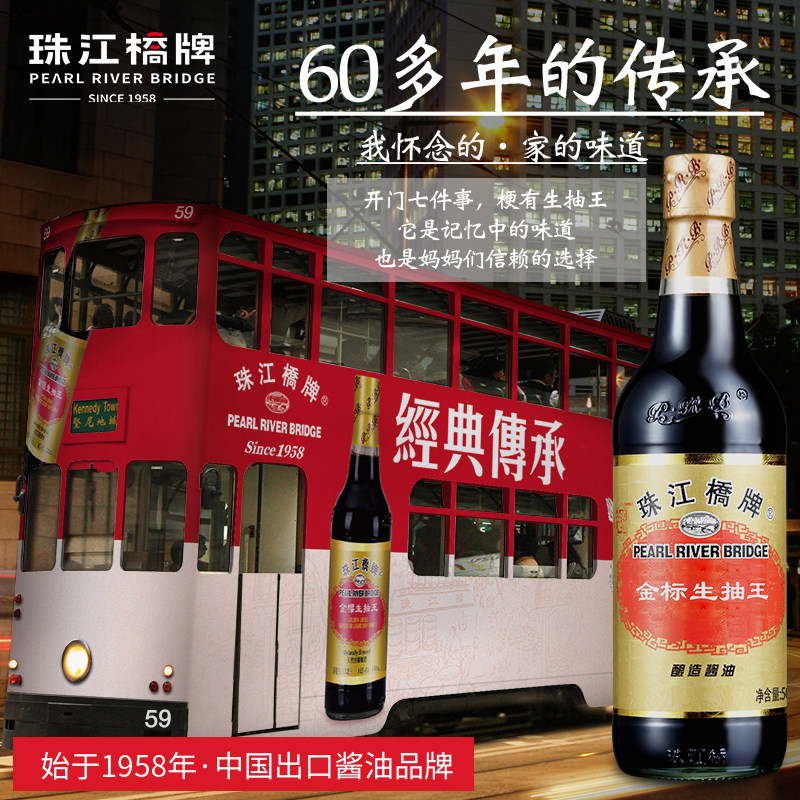 珠江桥牌金标生抽王500ml黄豆酿造酱油家用炒饭炒菜凉拌豉油