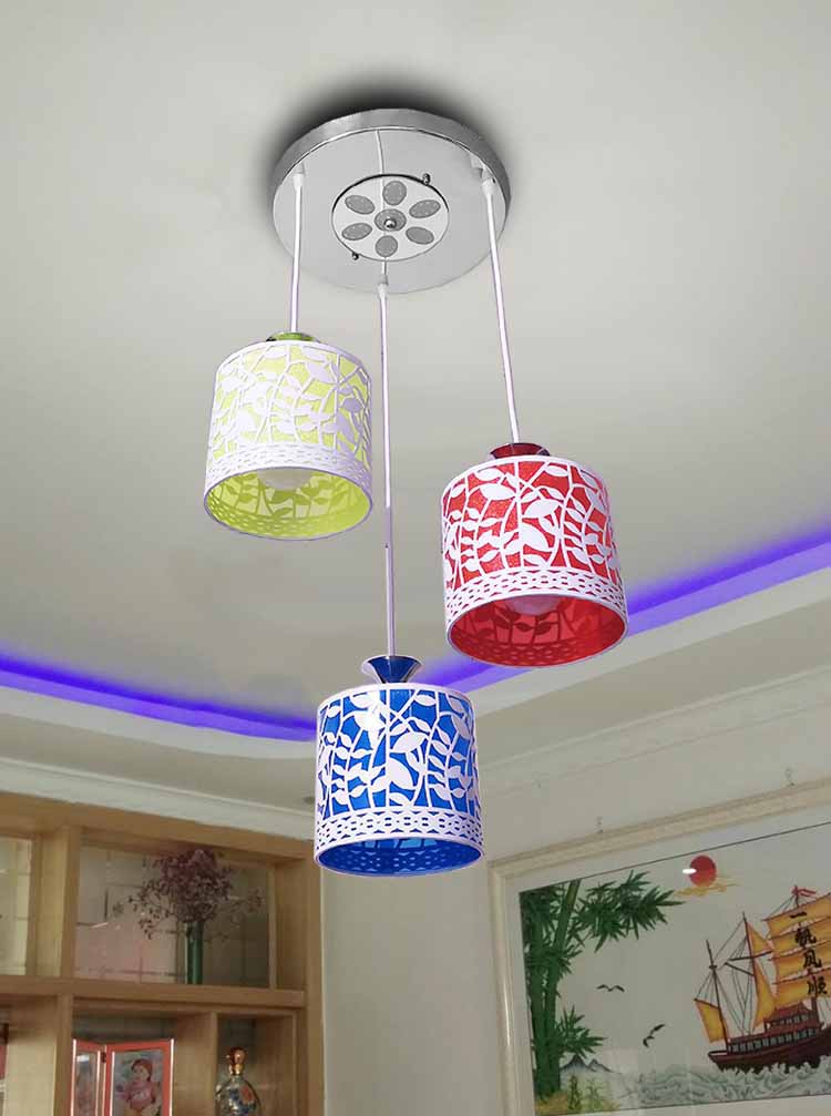 餐厅吊灯三头饭厅吧台餐吊灯具铁艺彩光简约现代田园风格餐桌吊灯