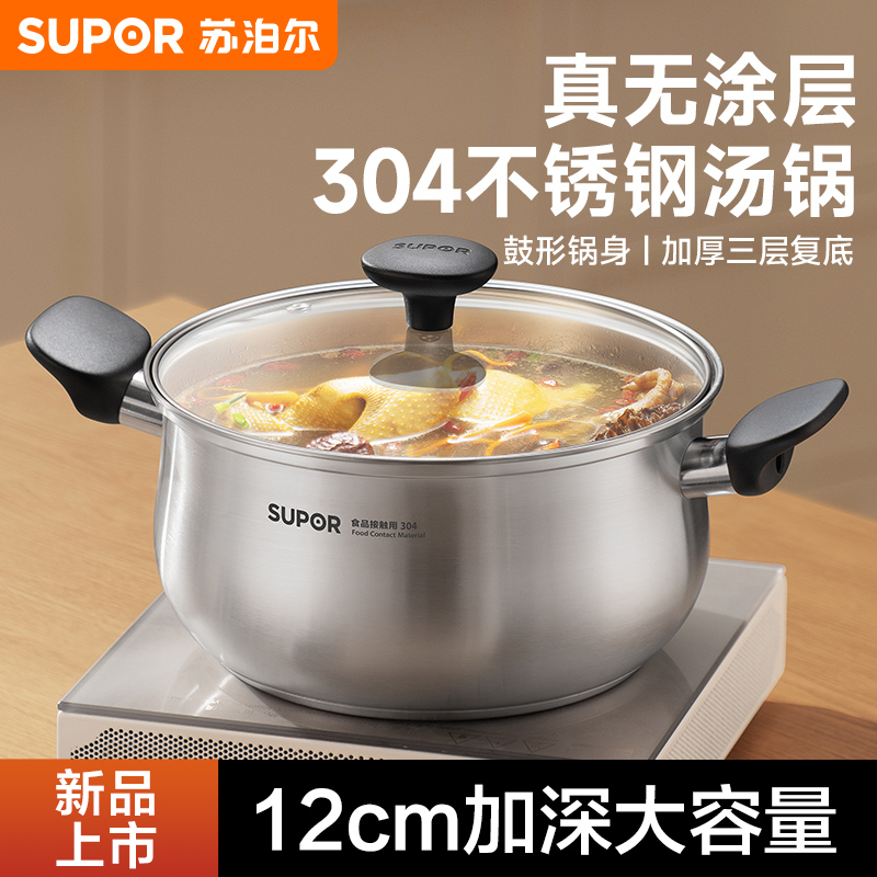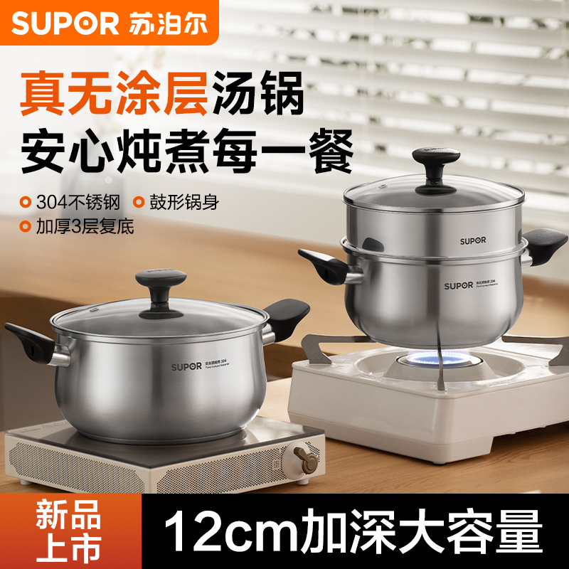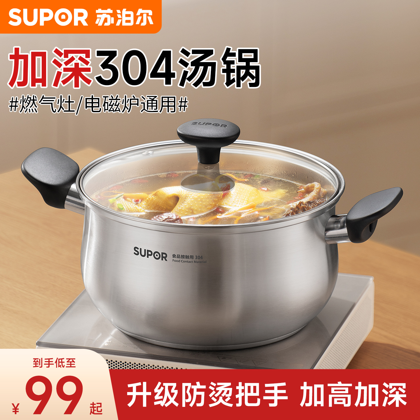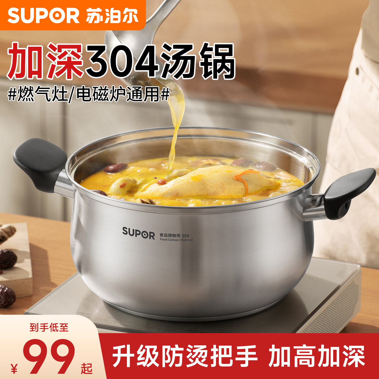 苏泊尔汤锅不锈钢304家用小蒸锅煮锅炖锅汤桶燃气电磁炉2025新款