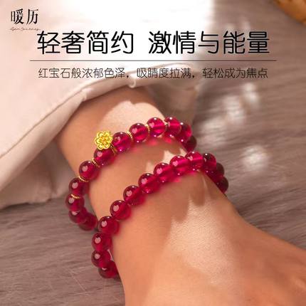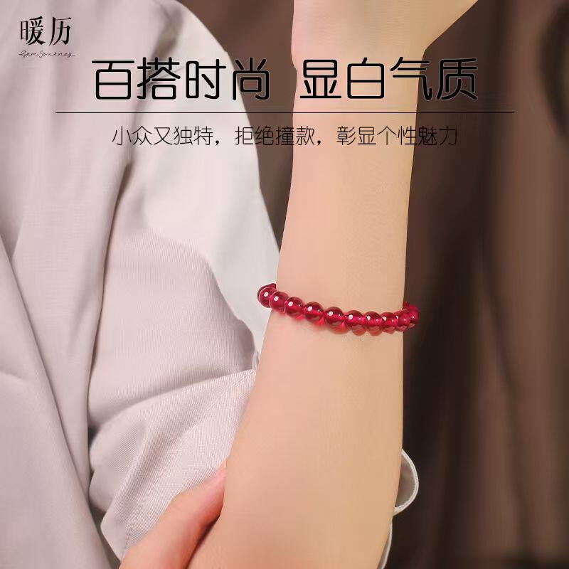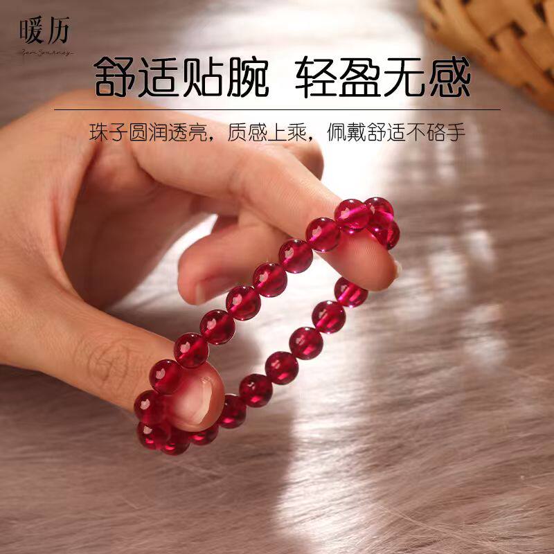 【暖历高级珠宝定制】 培育红宝石手链耐磨不变色8mm女士手串配饰