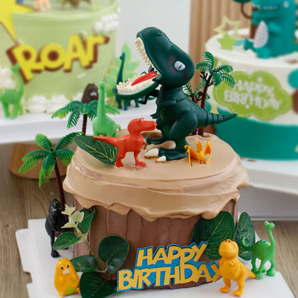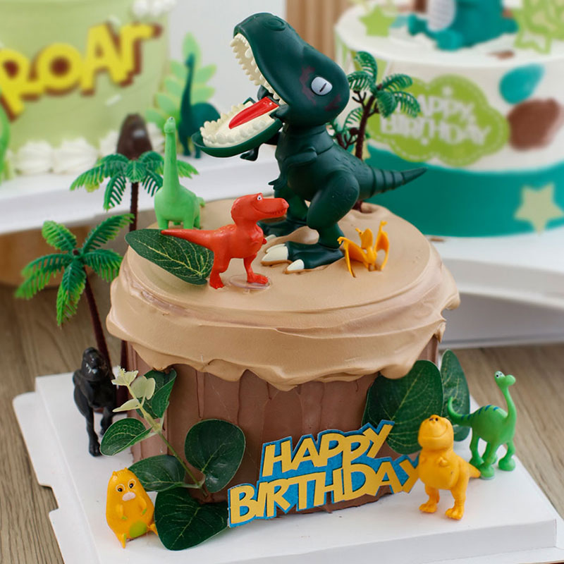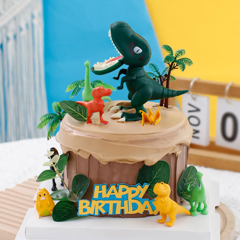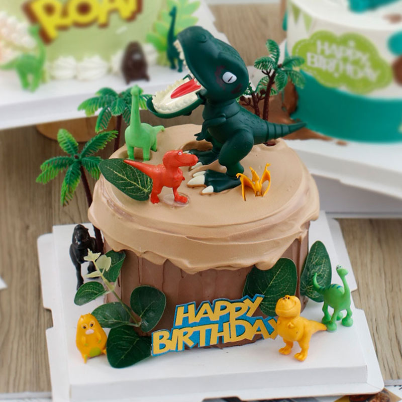 网红恐龙烘焙蛋糕装饰创意小怪兽霸王龙森林小树卡通儿童生日装扮