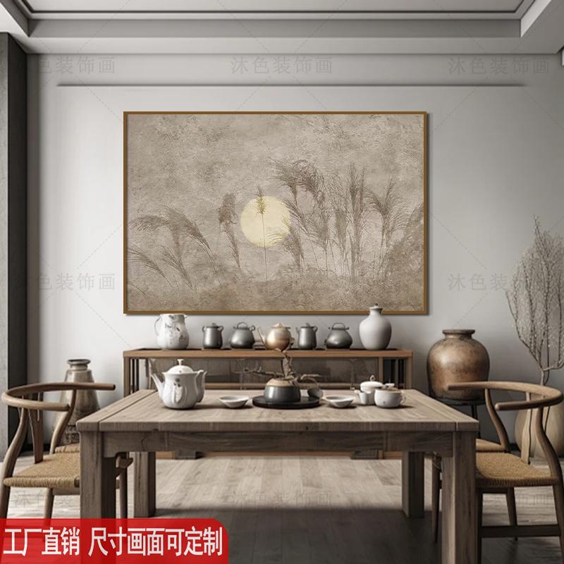 中式侘寂风横版挂画茶楼茶室背景墙装饰画民宿酒店横幅无框画定制