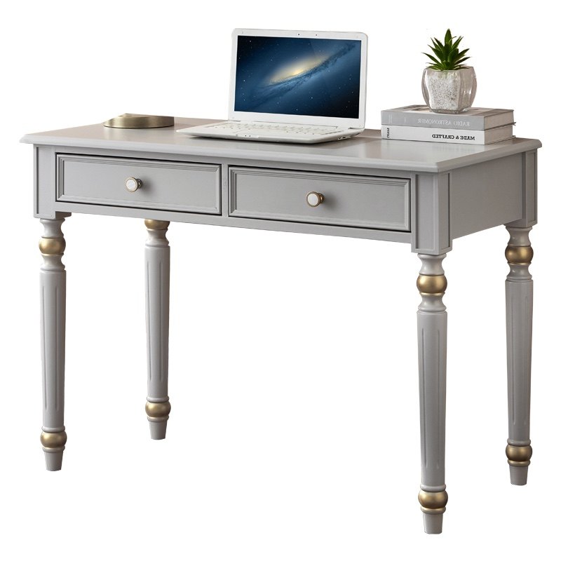 美式轻奢实木书桌欧式莫兰迪灰色法式奶油风电脑桌家用小型写字桌
