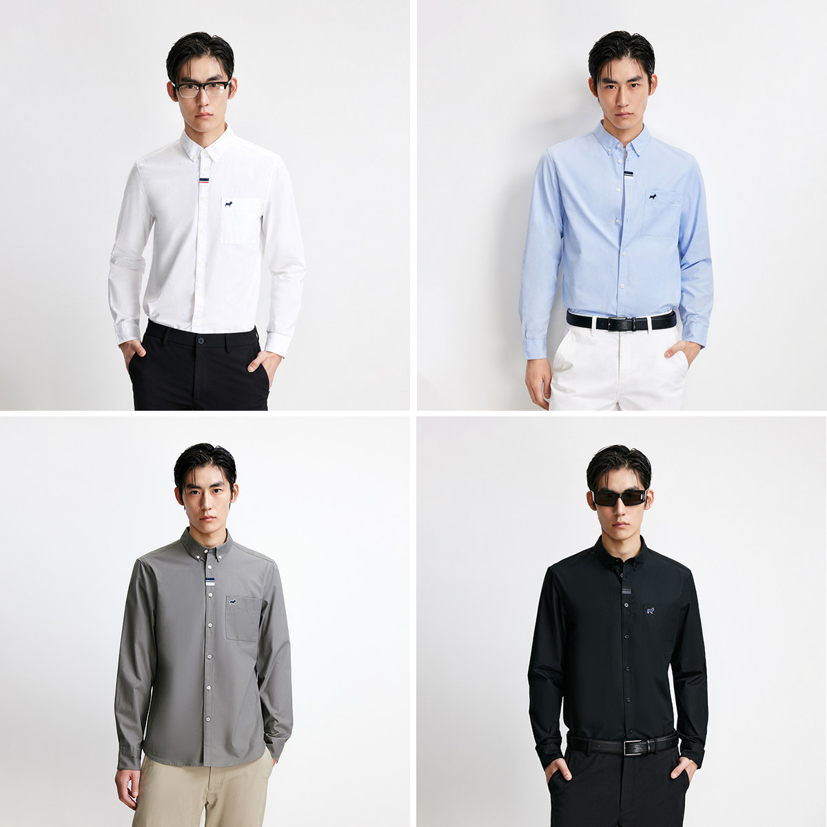 杰克琼斯男装秋季新款标准正肩纯棉舒适亲肤通勤休闲百搭长袖衬衫