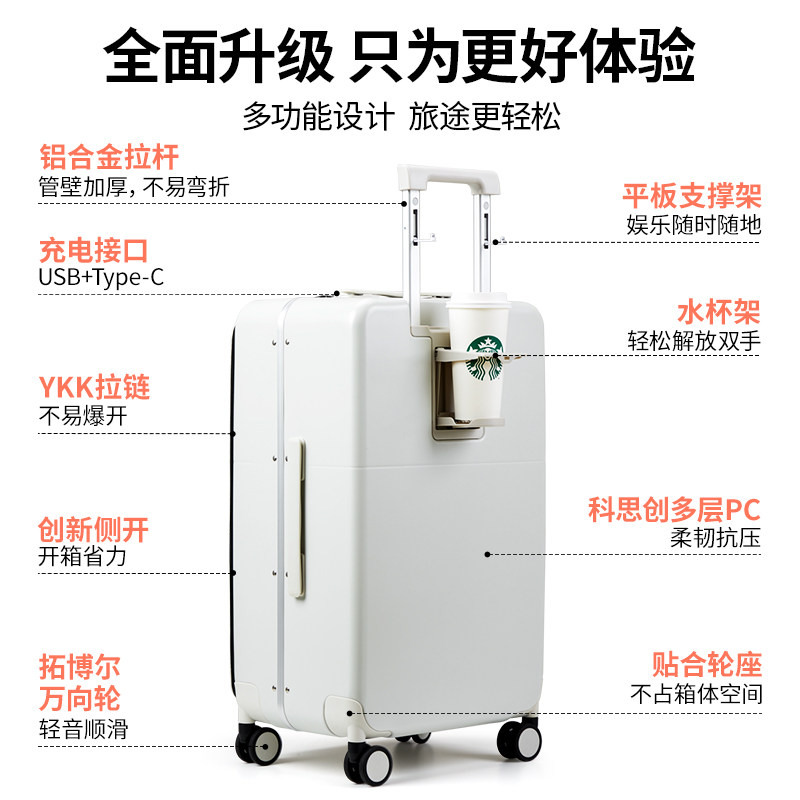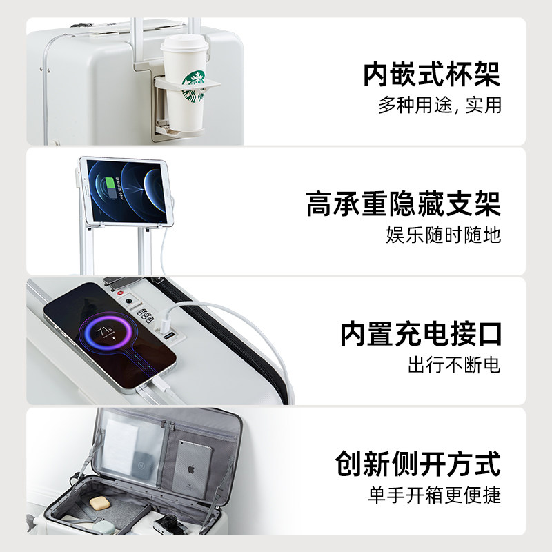 汉客侧开盖多功能铝框行李箱20寸拉杆箱女26大容量登机箱旅行箱男