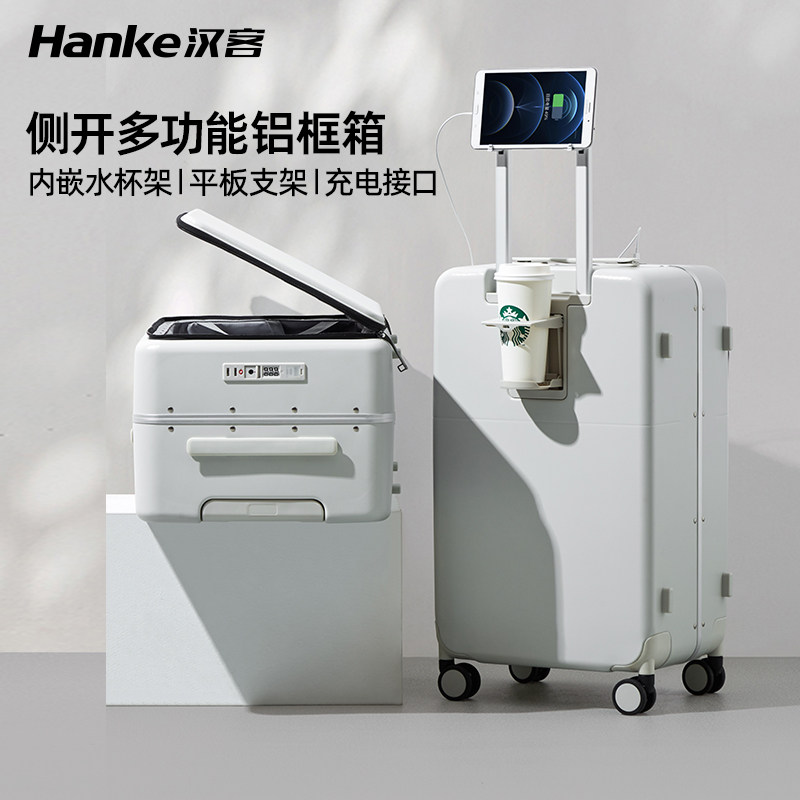 汉客侧开盖多功能耐用铝框拉杆箱
