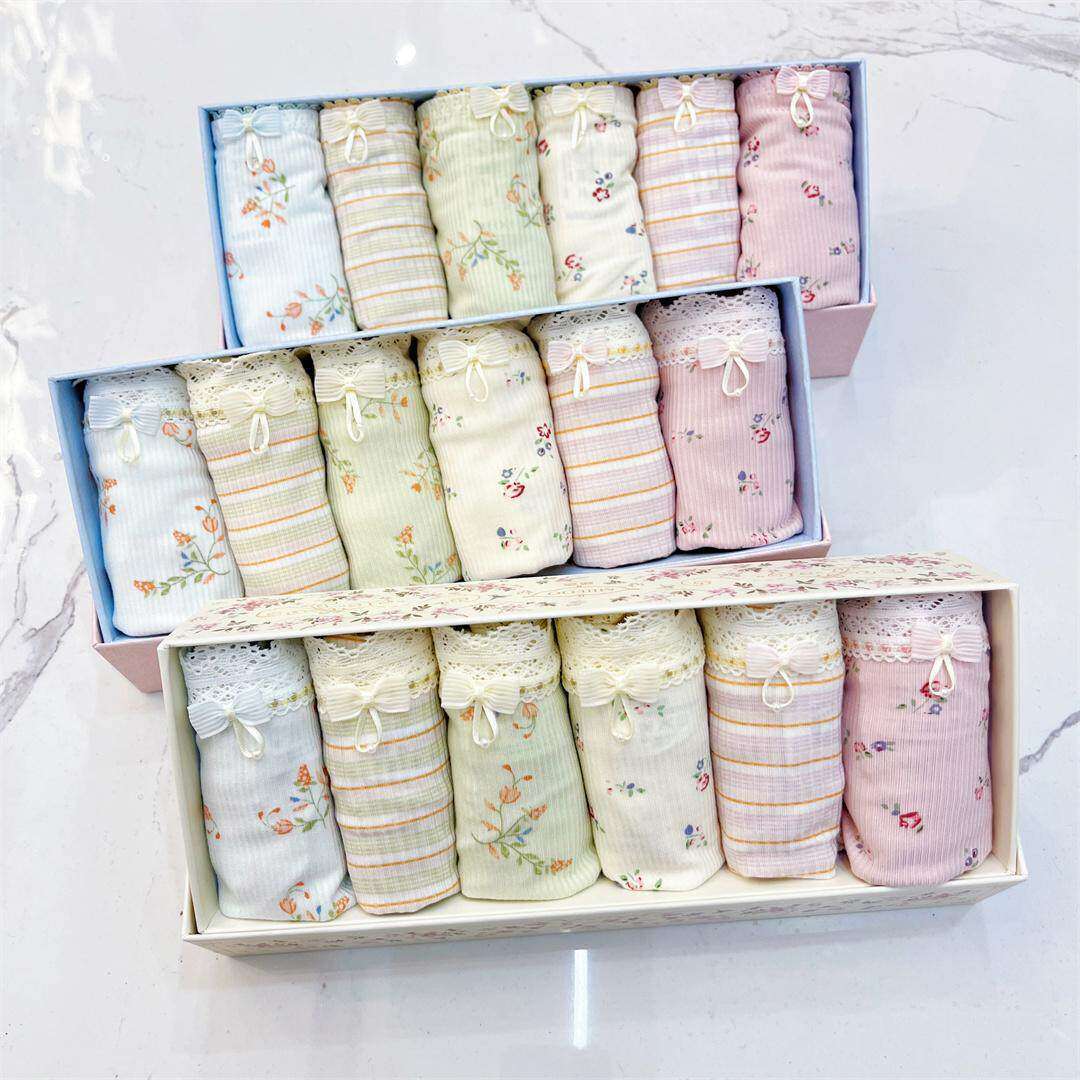 秘语六条盒装女士内裤莫代尔中腰高开叉蕾丝透气冰丝平角裤多款式