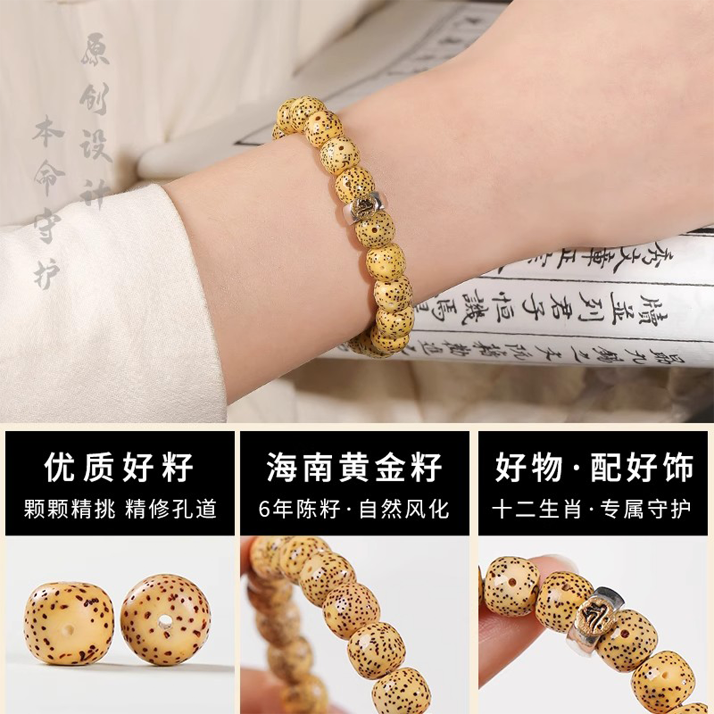 海南黄金籽星月菩提子手串守护神单圈佛珠手链