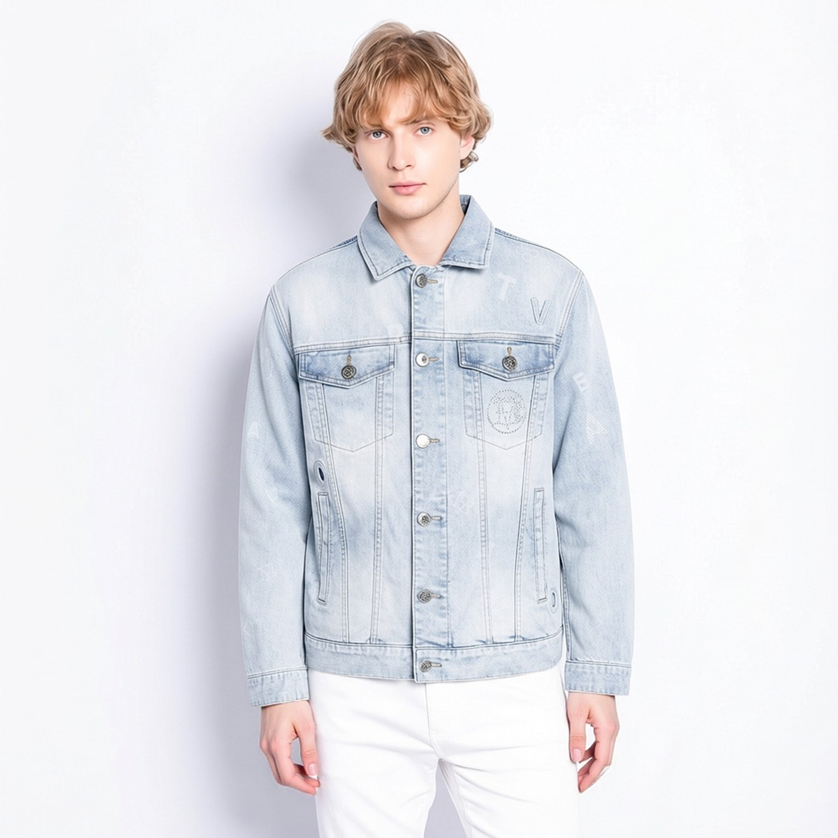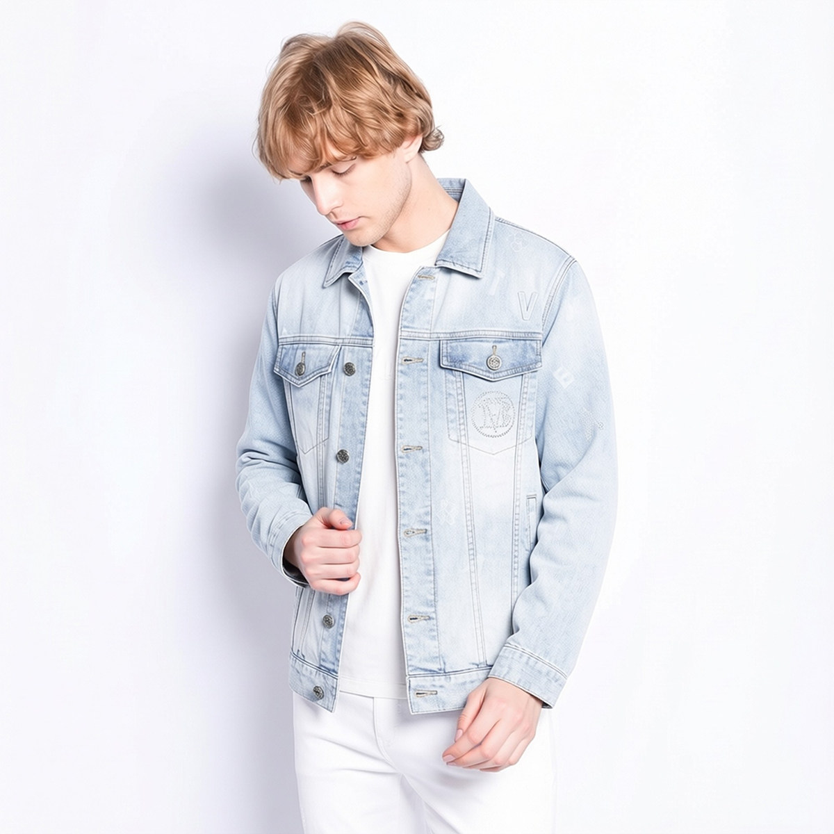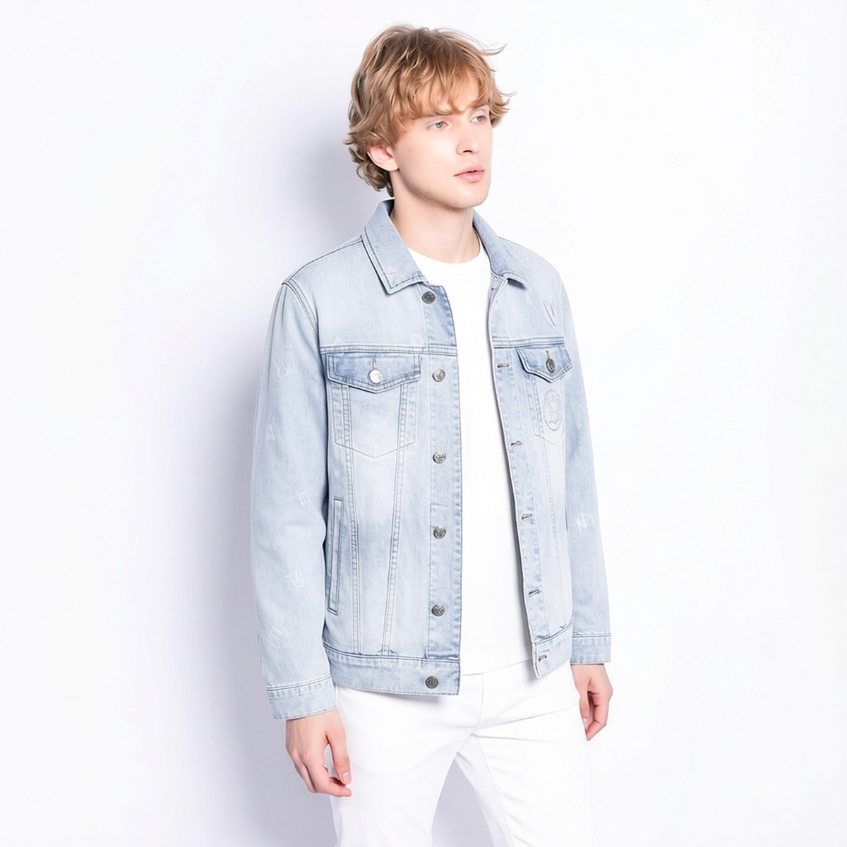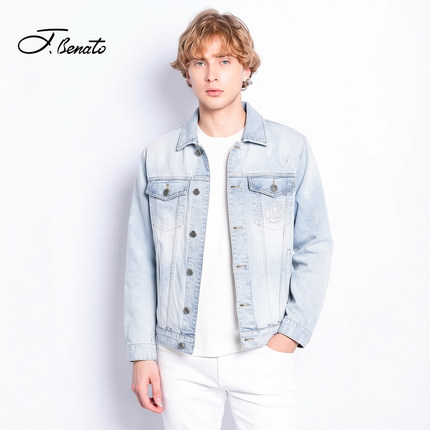 宾度男装春夏季男士牛仔风翻领牛仔外套男浅蓝色百搭修身休闲夹克