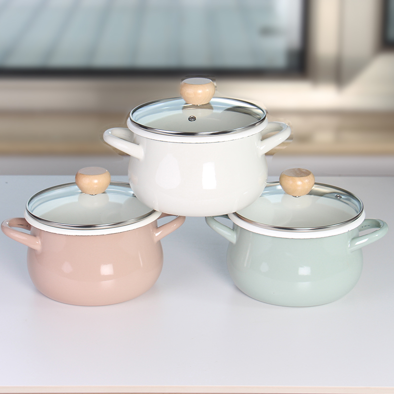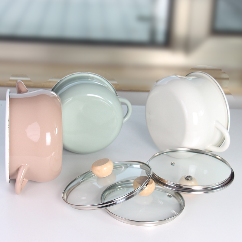 加厚搪瓷汤锅家用蒸锅奶锅珐琅锅泡面高颜值铁锅带盖可电磁炉使用