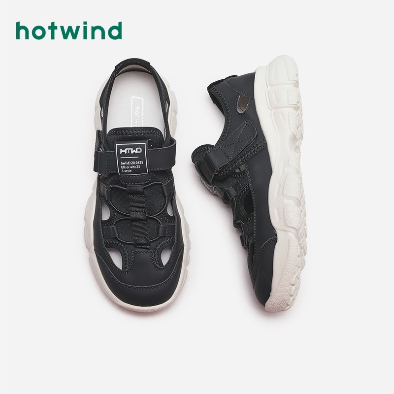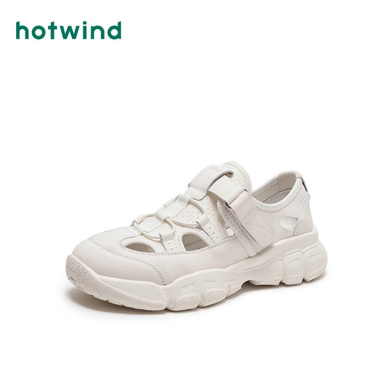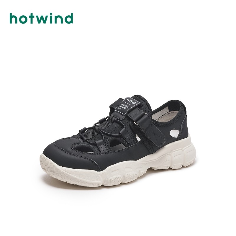 热风2024年春季新款女士纯色时尚休闲鞋魔术贴厚底透气舒适女鞋