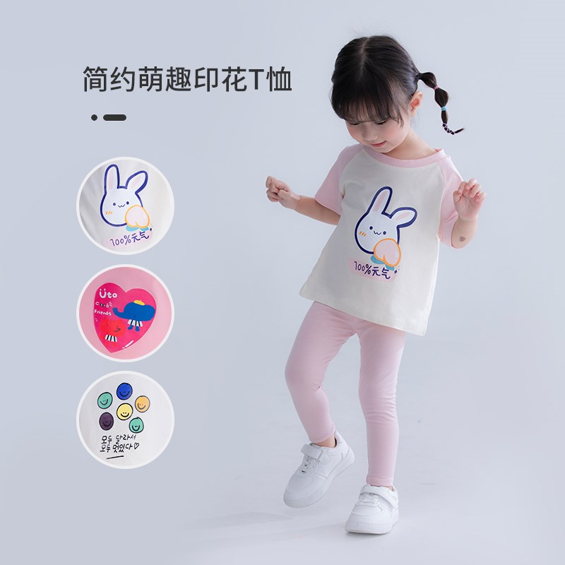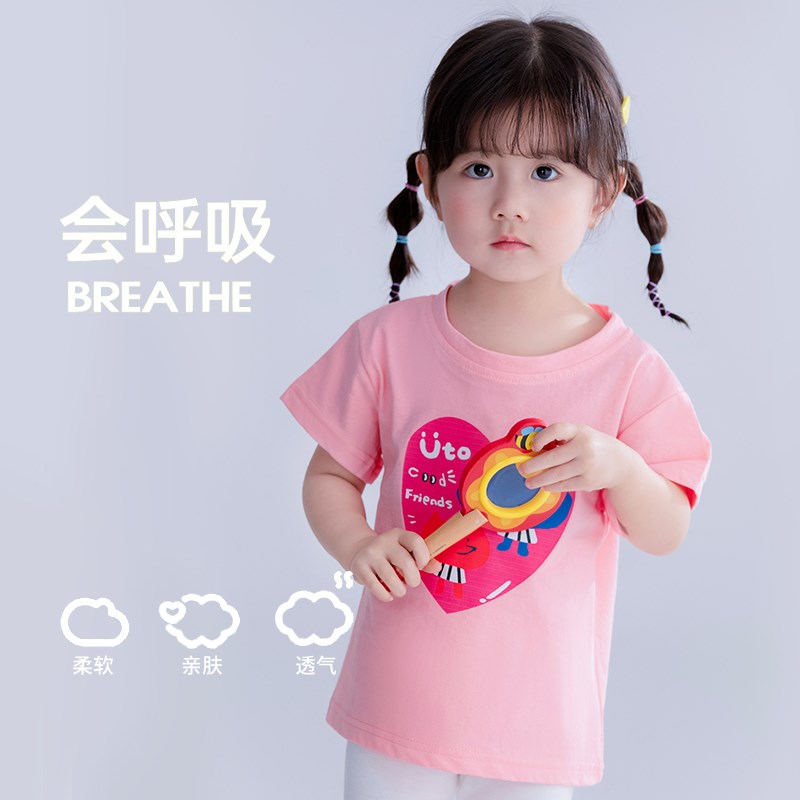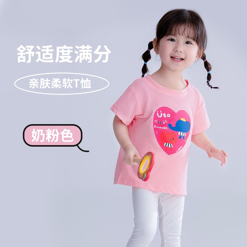 女童短袖T恤纯棉夏季薄款装卡通可爱洋气上衣婴儿宝宝白色女孩