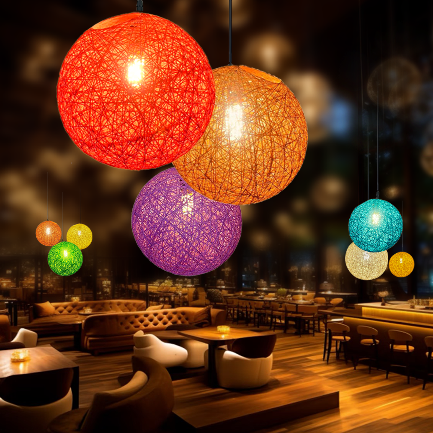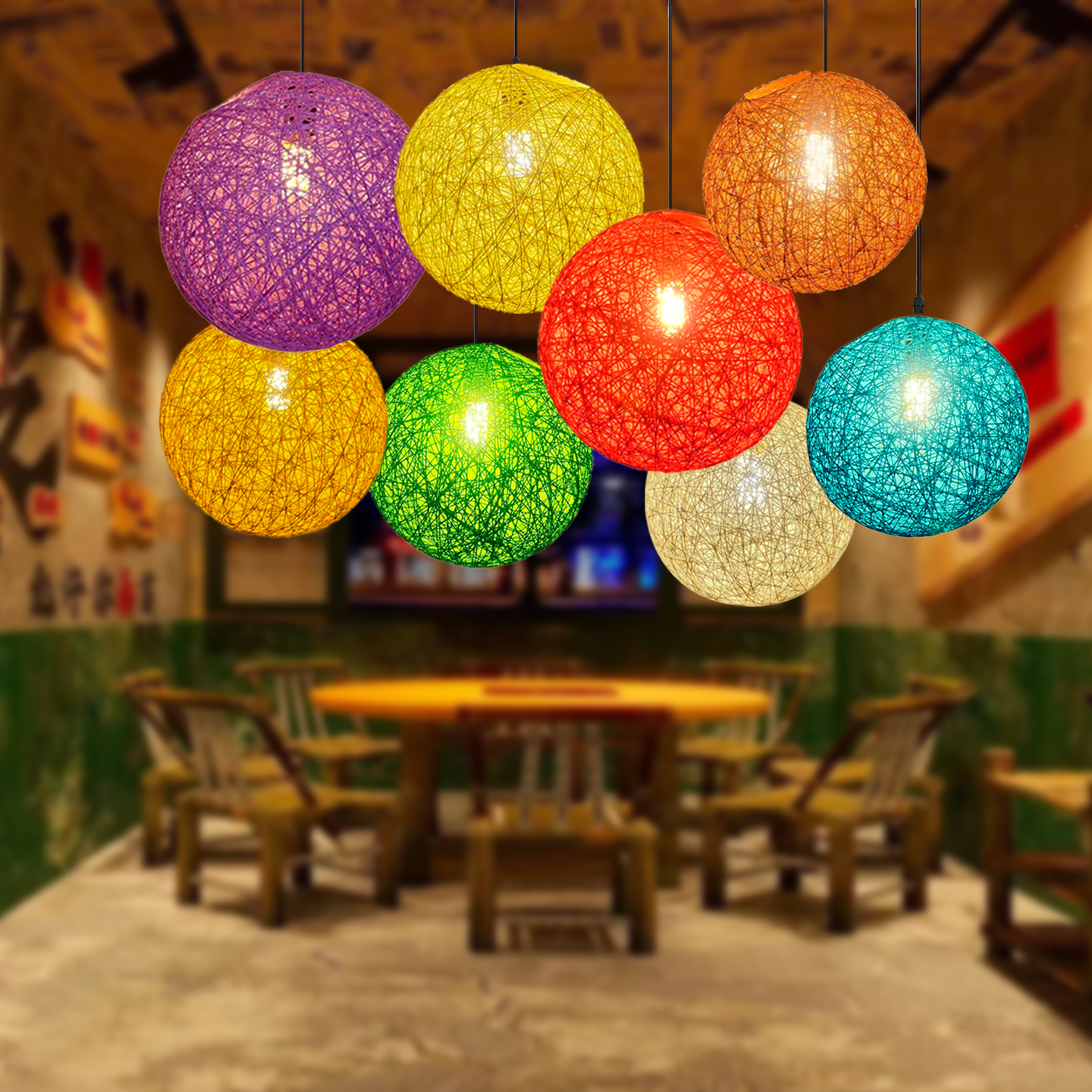 复古麻球吊灯圆球编织灯清吧服装店餐厅饭店商场藤艺装饰球形灯具
