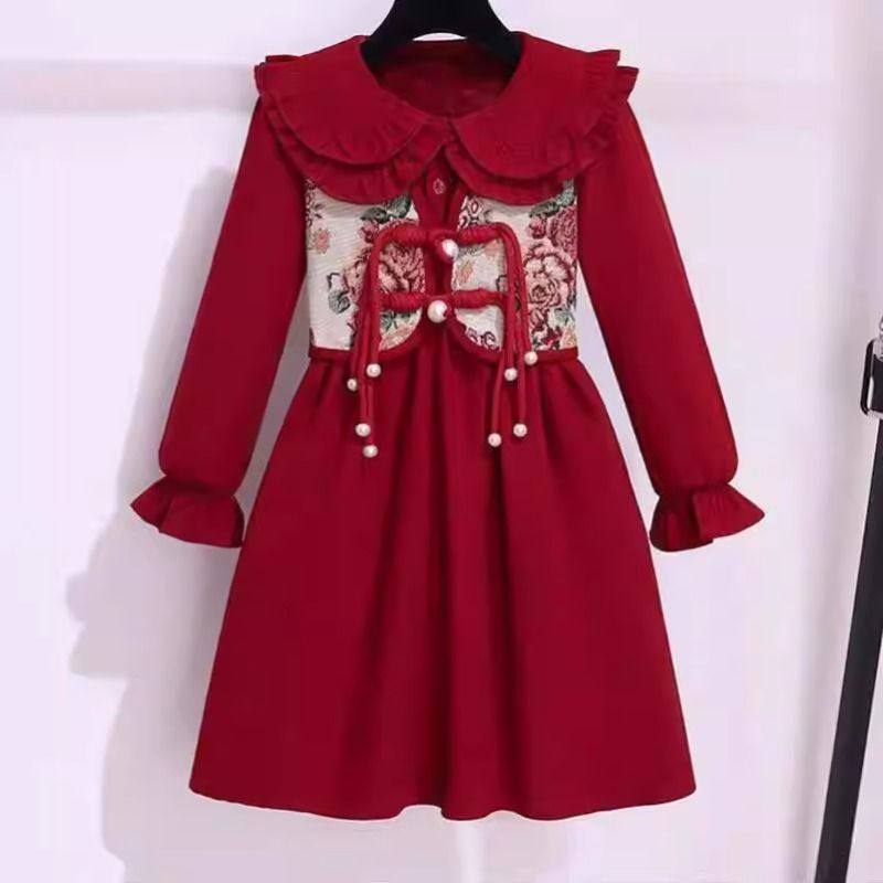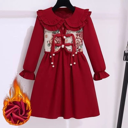秋冬新款中大童新年中国风连衣裙
