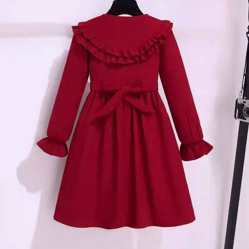 女童红色连衣裙秋冬加绒2026新款洋气小女孩儿童公主裙女宝宝礼服