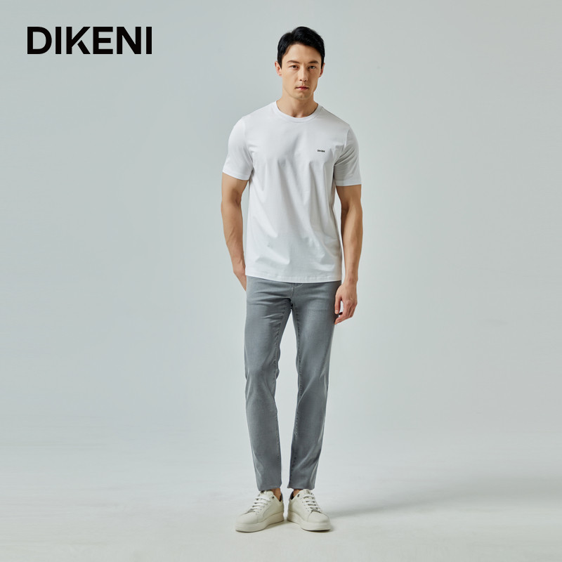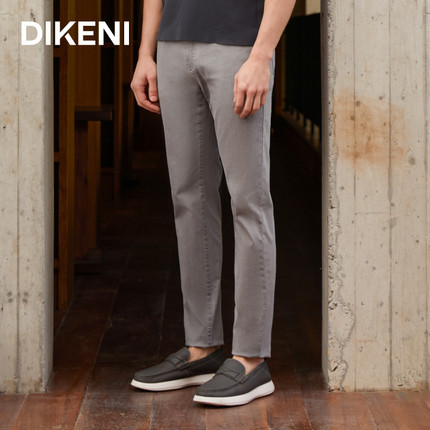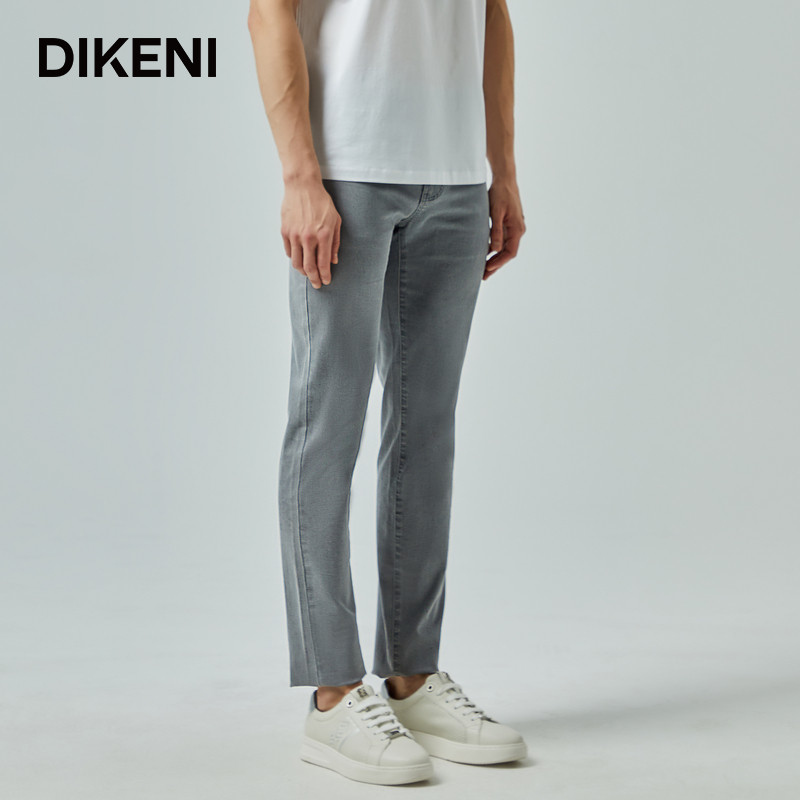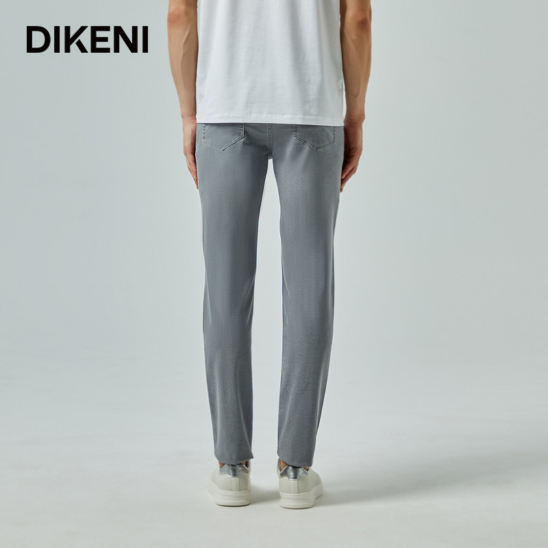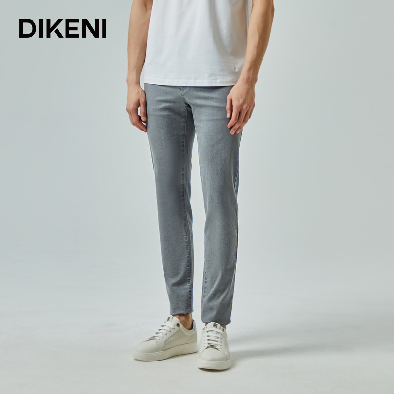 迪柯尼浅灰时尚棉弹牛仔裤新品男士舒适宽松直筒百搭小灰牛
