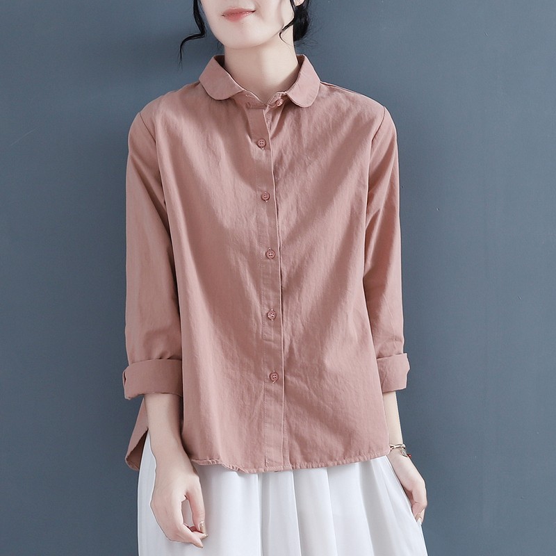 小众别致上衣夏季2024复古文艺全棉衬衫女长袖休闲娃娃领棉麻衬衣