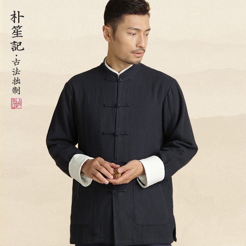 中庸经典!朴笙记原创唐装男款宽松春秋茶禅亚麻定制外套古风上衣