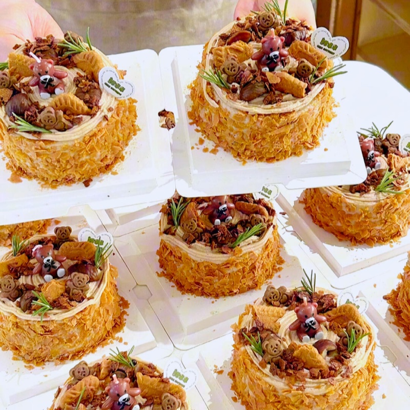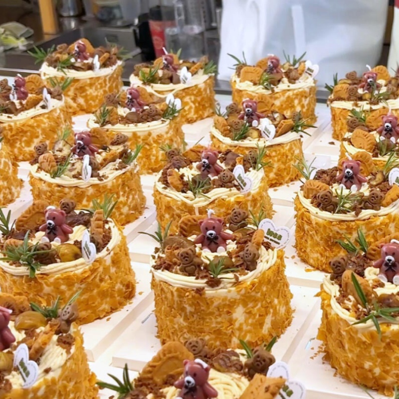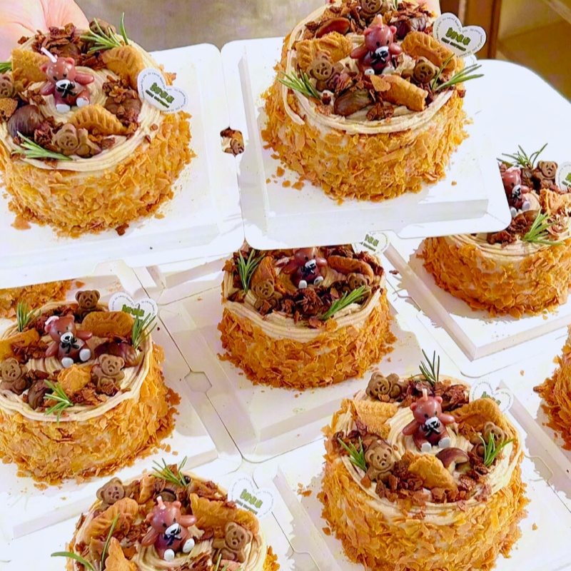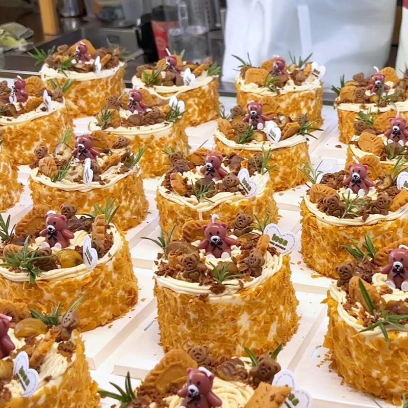网红秋天栗子蛋糕板栗蛋糕小熊蜡烛焦糖饼干黄油薄脆甜品台装扮