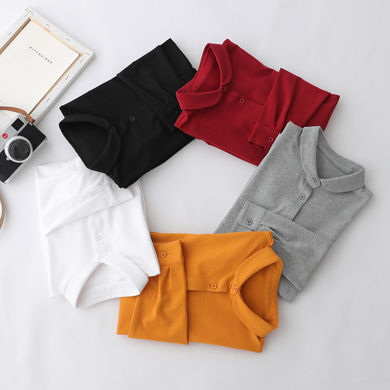 袖扣新疆纯棉娃娃领衬衣女长袖2025秋季日系弹力大码针织打底衬衣