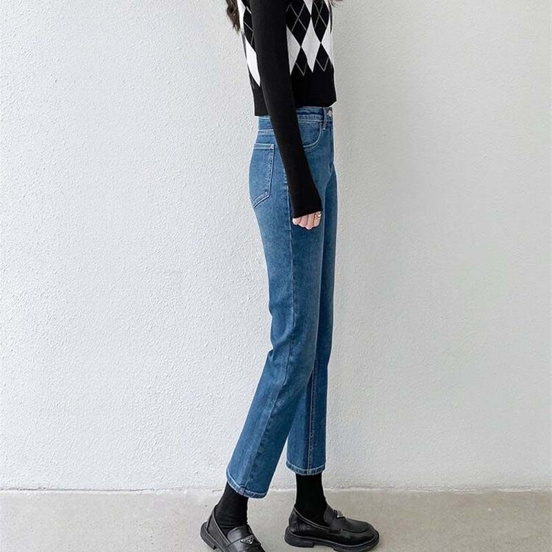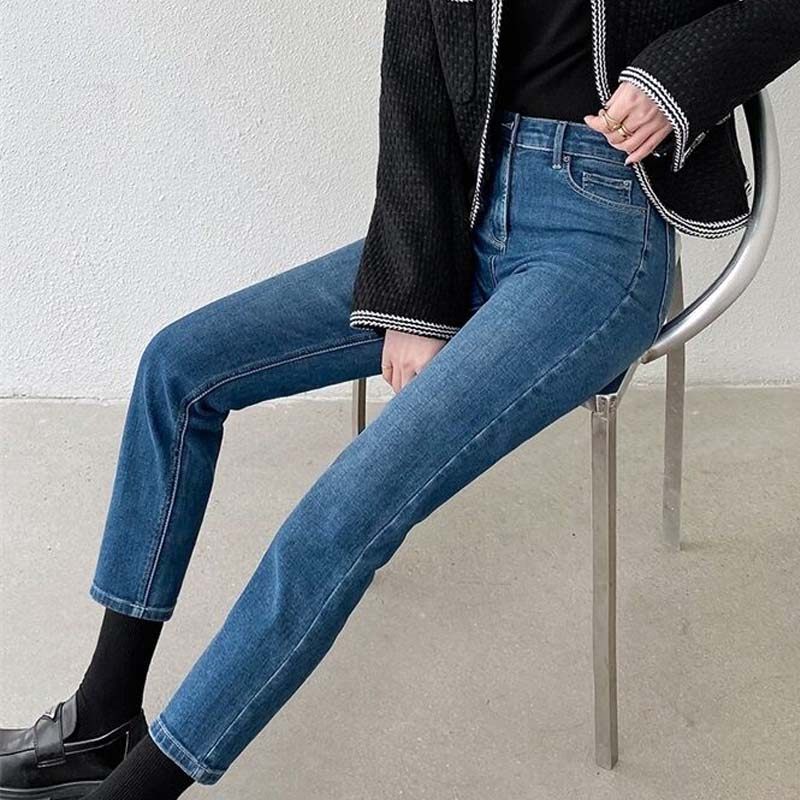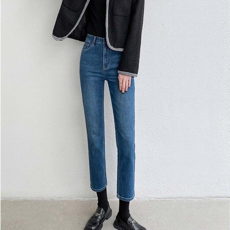 复古蓝高腰小直筒牛仔裤女九分宽松显瘦烟管裤子八分2025秋季新款