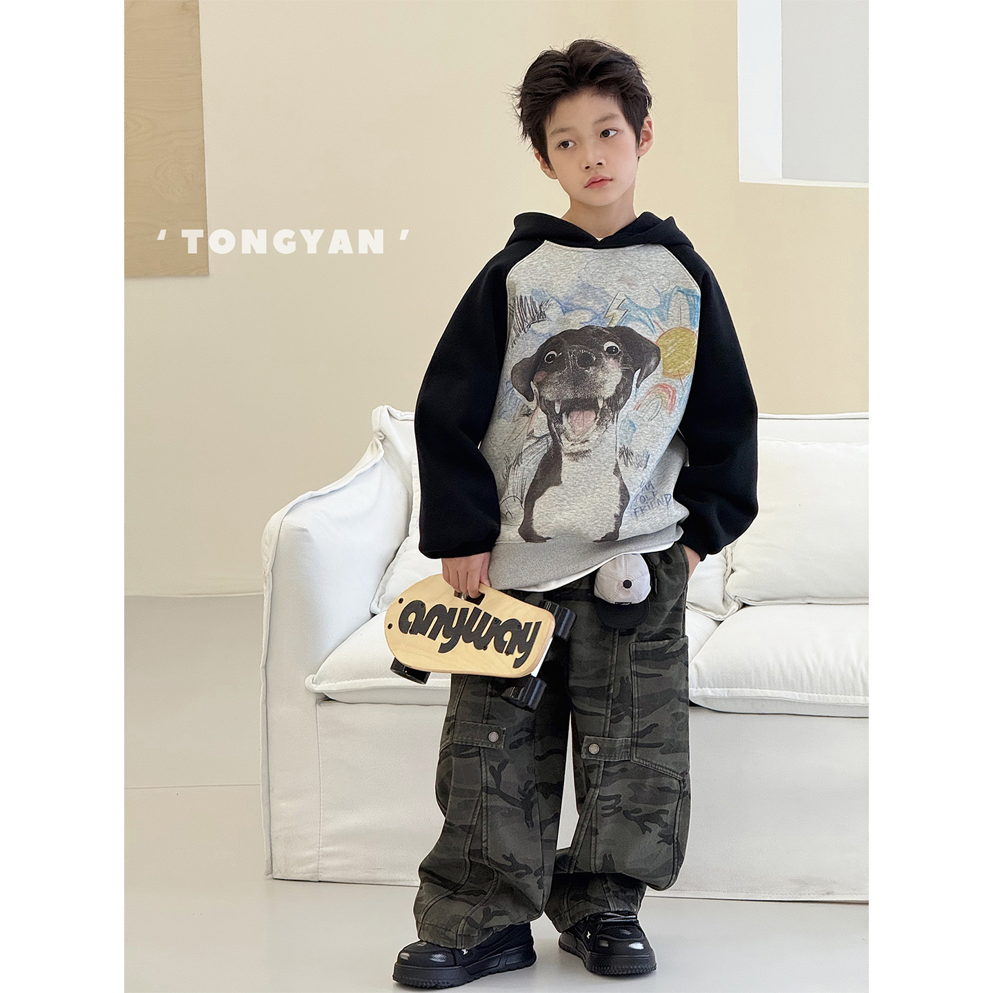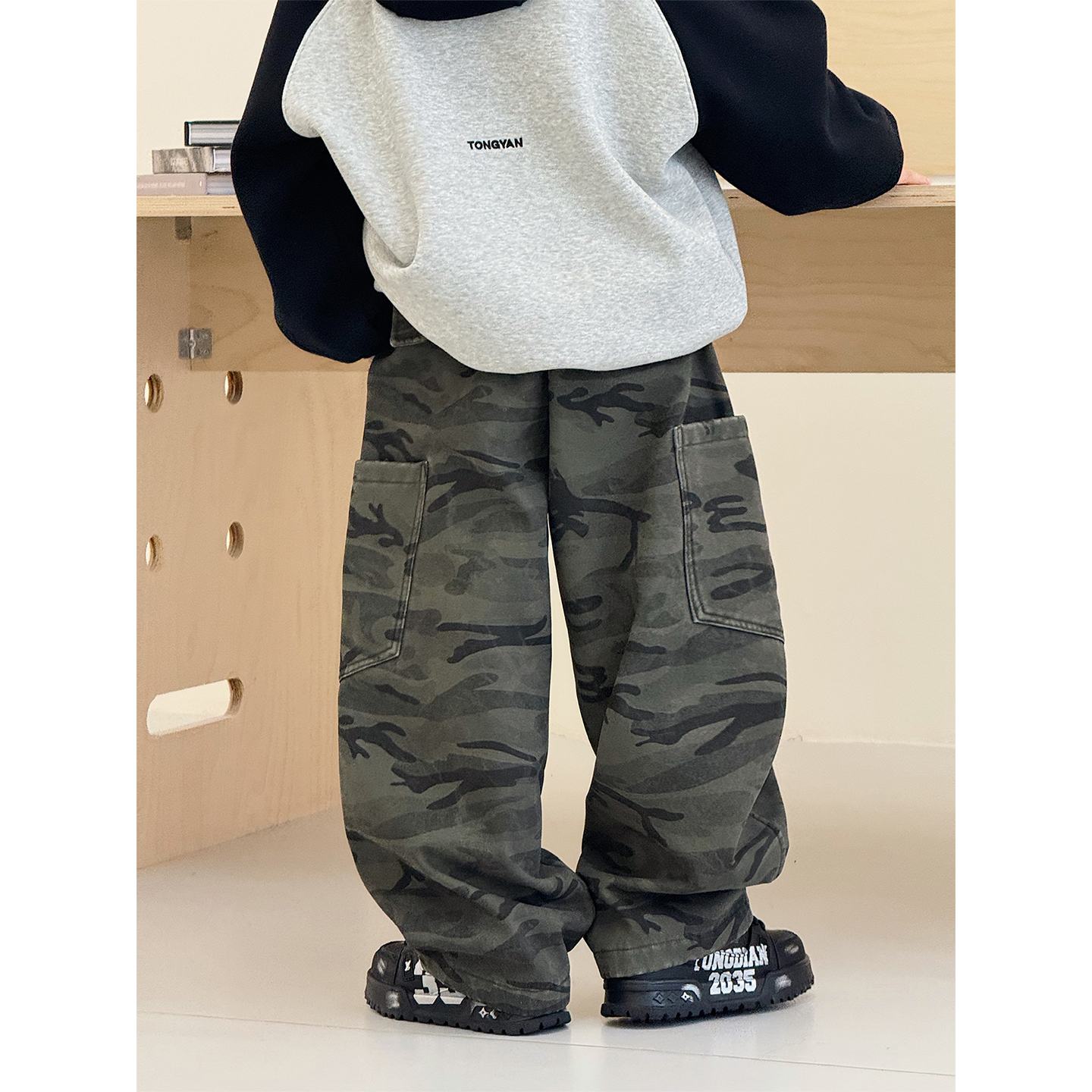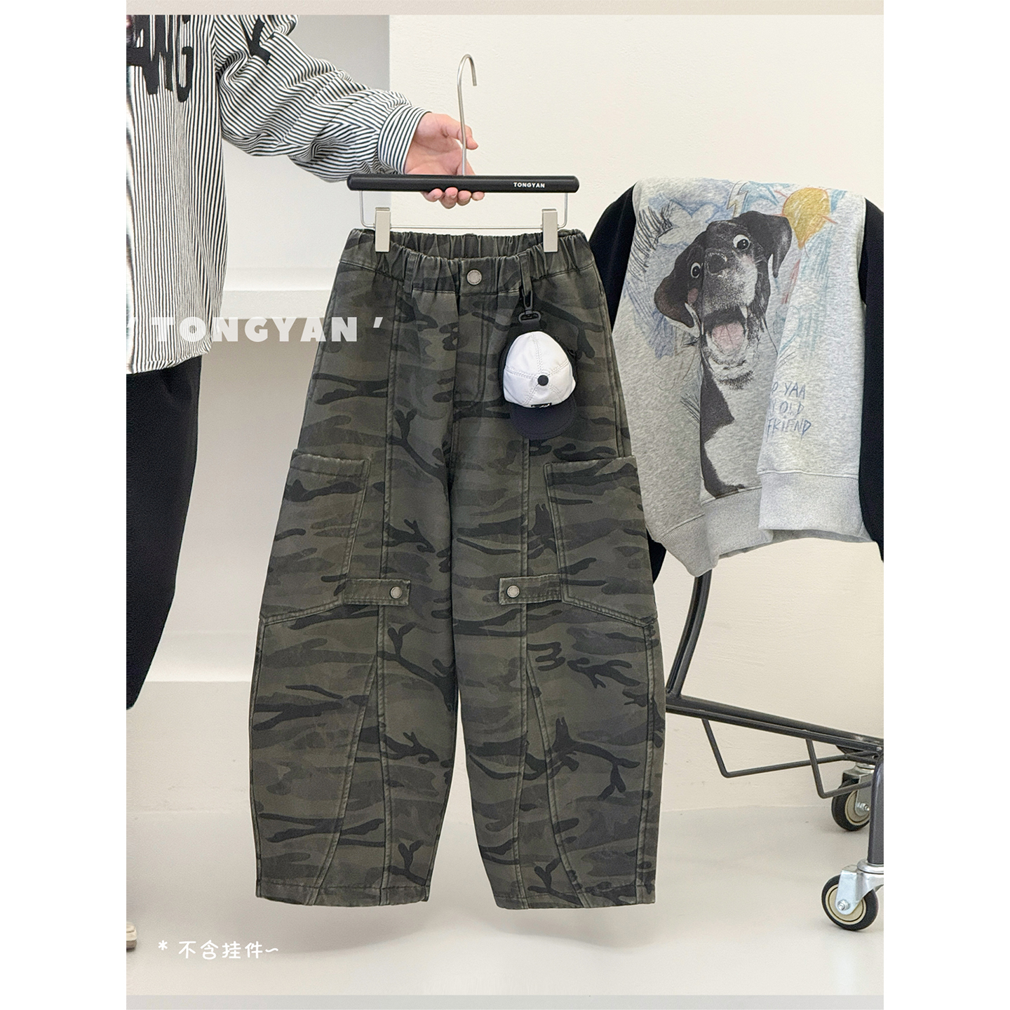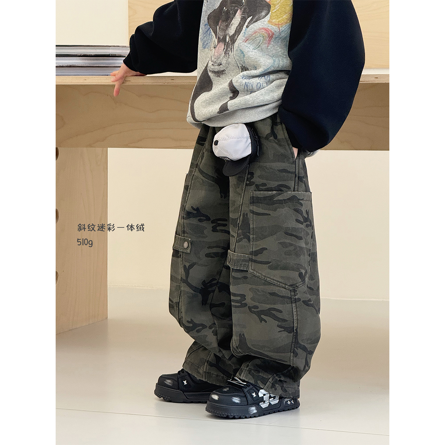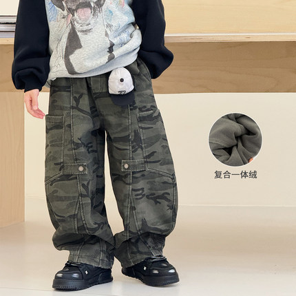 男童加绒裤子2025冬装新款中大童工装棉裤洋气老爹裤厚儿童迷彩裤