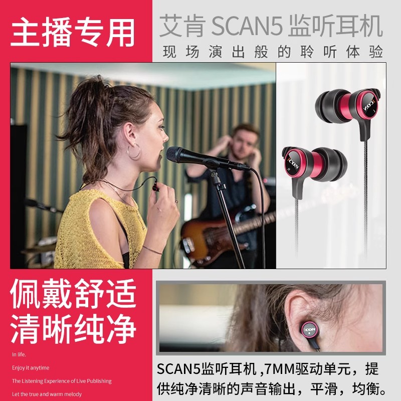 ICON艾肯scan5入耳式主播监听声卡耳机3米线长直播耳塞有线不带麦