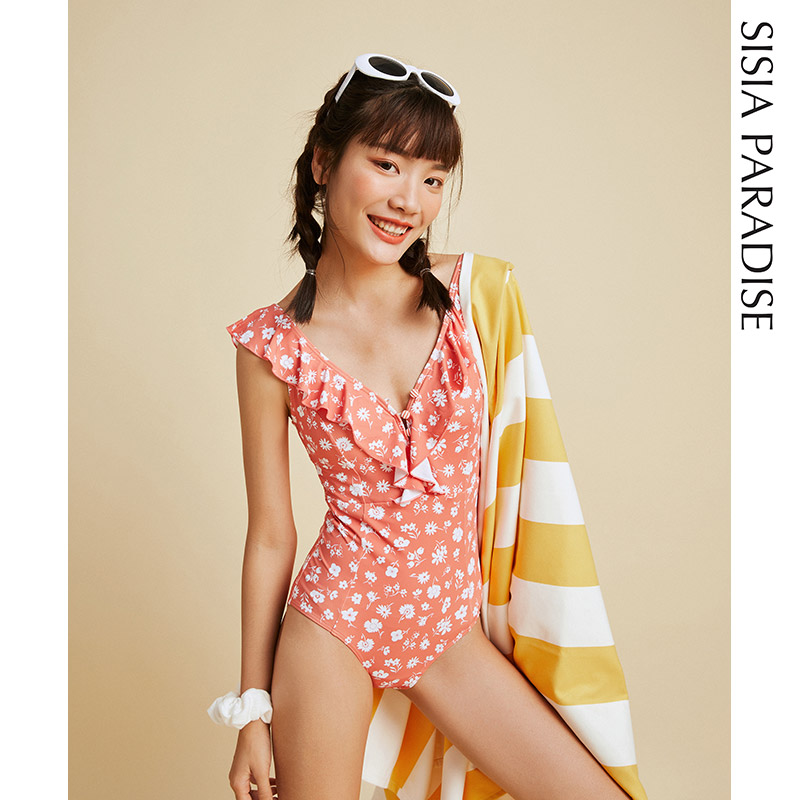 sisia欧美连体泳衣女新款聚拢显瘦花瓣边绝美高级感温泉连体泳衣