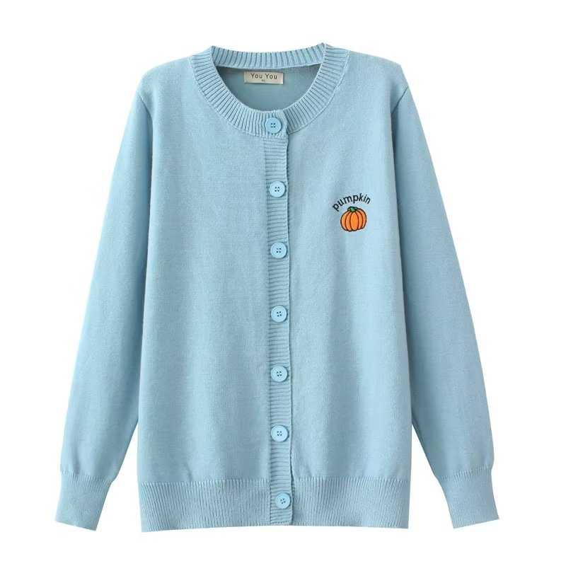 胡子叔大码韩版刺绣南瓜圆领毛衣外套女秋冬新款胖mm外搭针织开衫