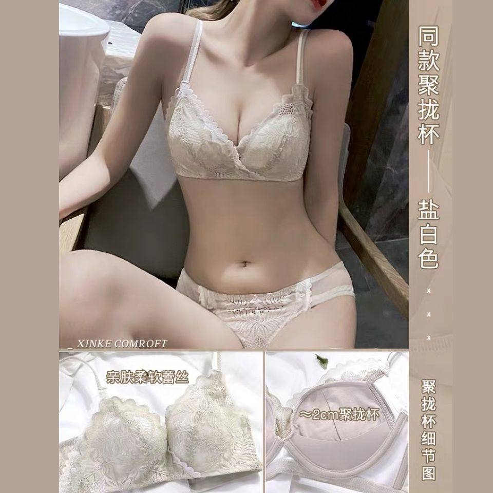 小胸聚拢蕾丝文胸内衣女舒适性感无钢圈调整型收副乳防下垂上托厚