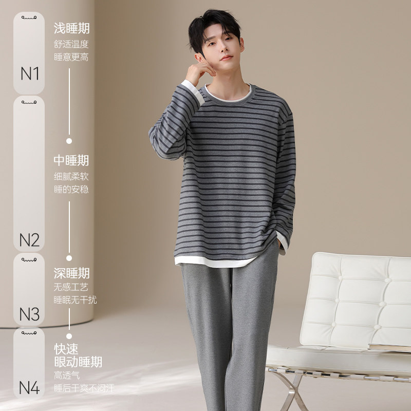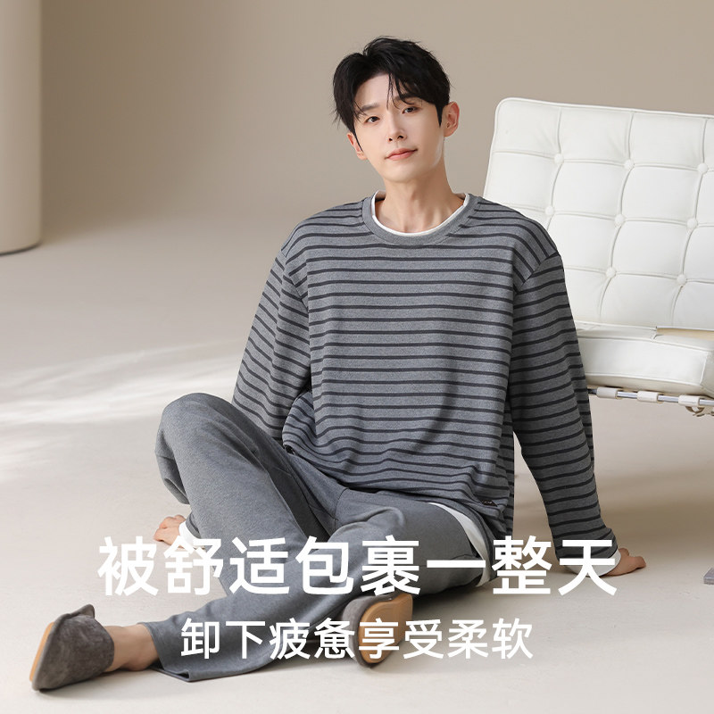 猫人男士纯棉睡衣高级感长袖大码2026新款可外穿全棉家居服套装春