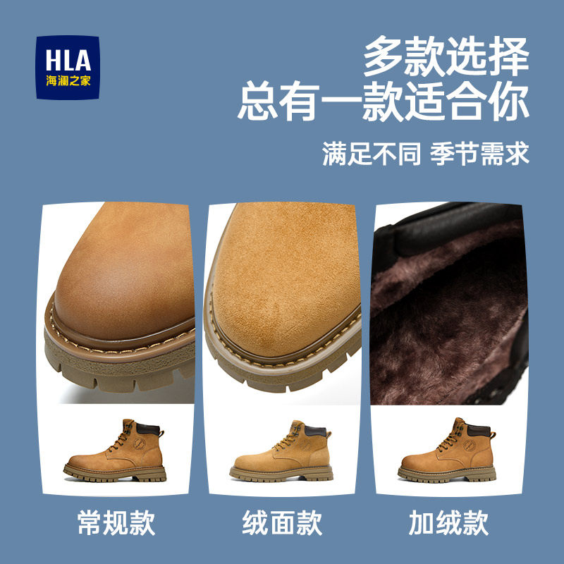 HLA/海澜之家男鞋新款冬季复古高帮户外休闲大黄靴加绒百搭工装靴
