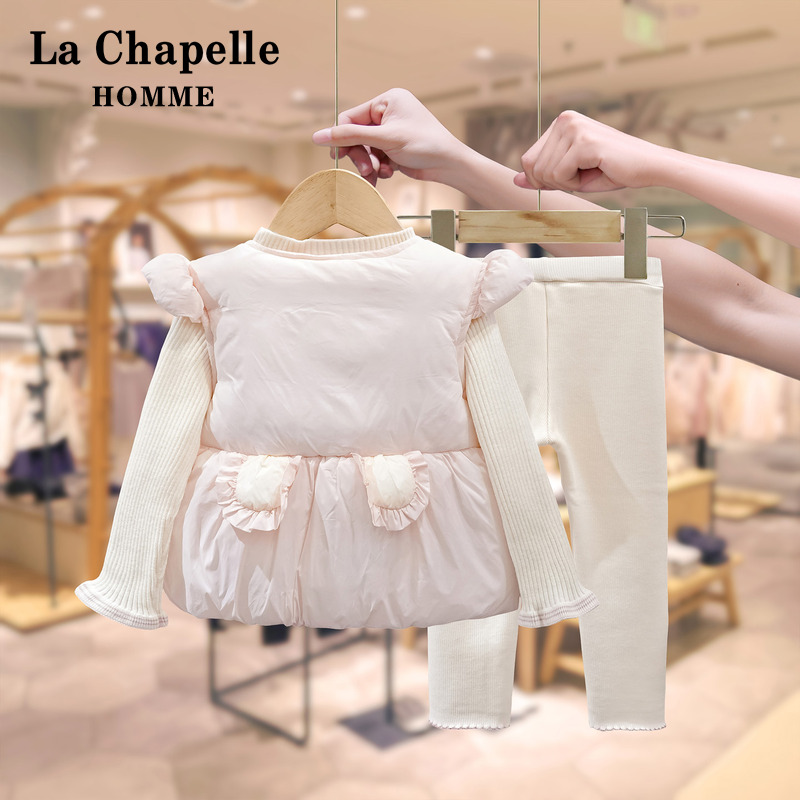 拉夏贝尔女童套装秋冬装2025新款洋气儿童装宝宝棉马甲毛衣三件套
