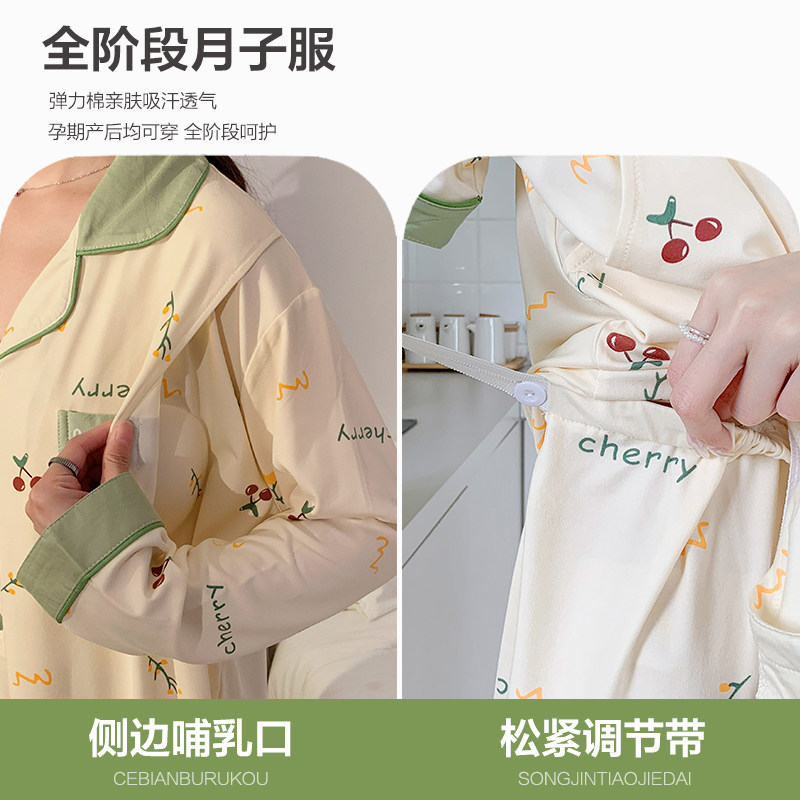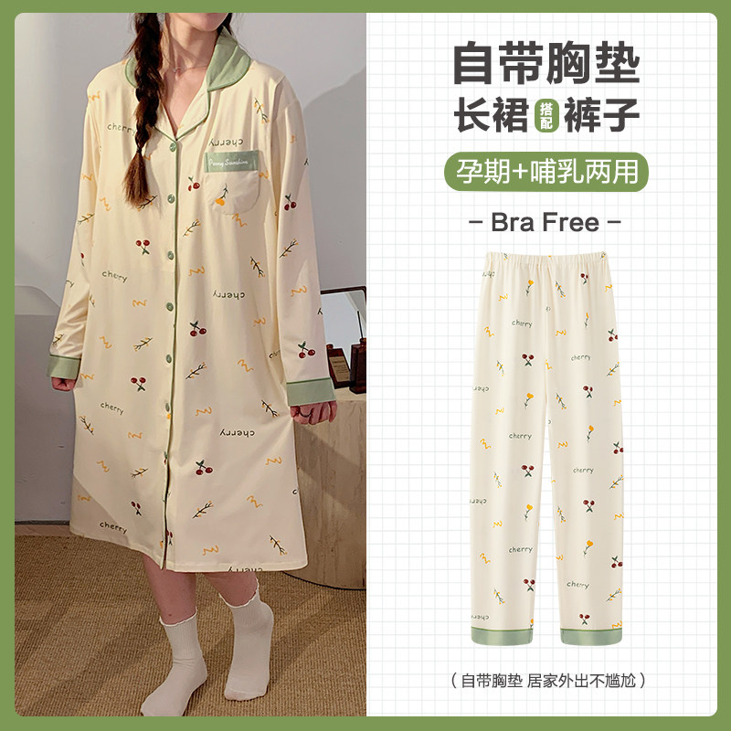 带胸垫孕妇睡衣哺乳春秋冬纯棉月子服夏季薄款产后10月份睡裙产妇