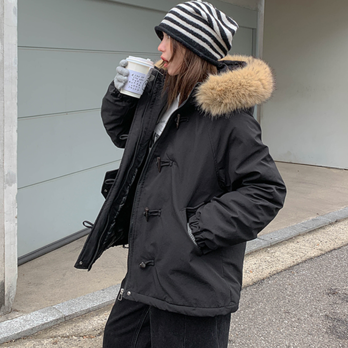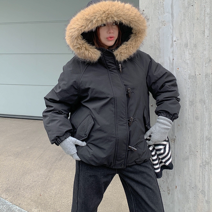 韩国代购特大码女装胖mm冬装新品时尚可拆卸毛领保暖休闲棉衣1219