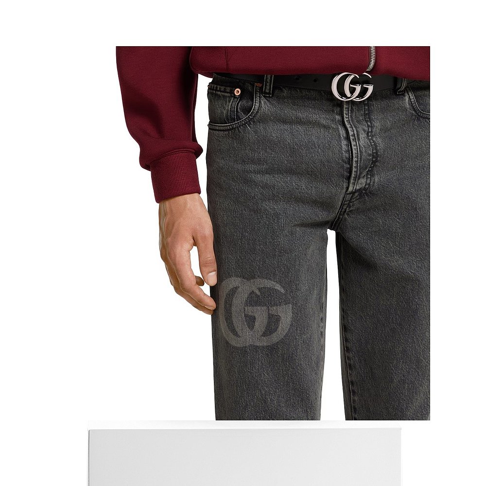 自营欧洲直邮Gucci/古驰 男士灰色棉双G印花修身版牛仔裤