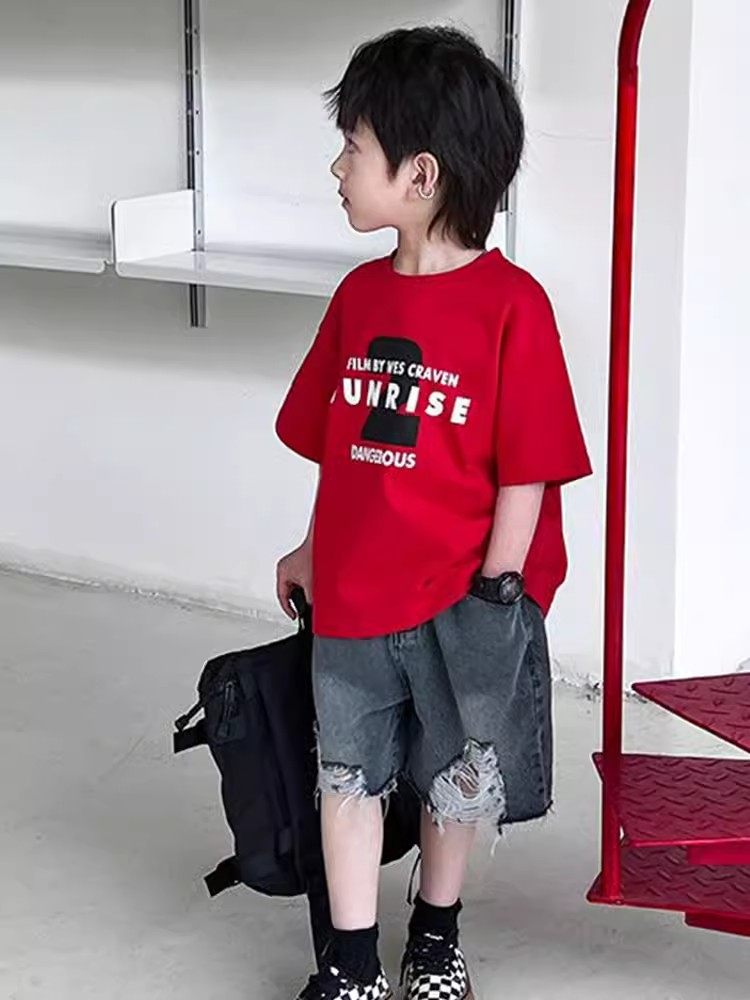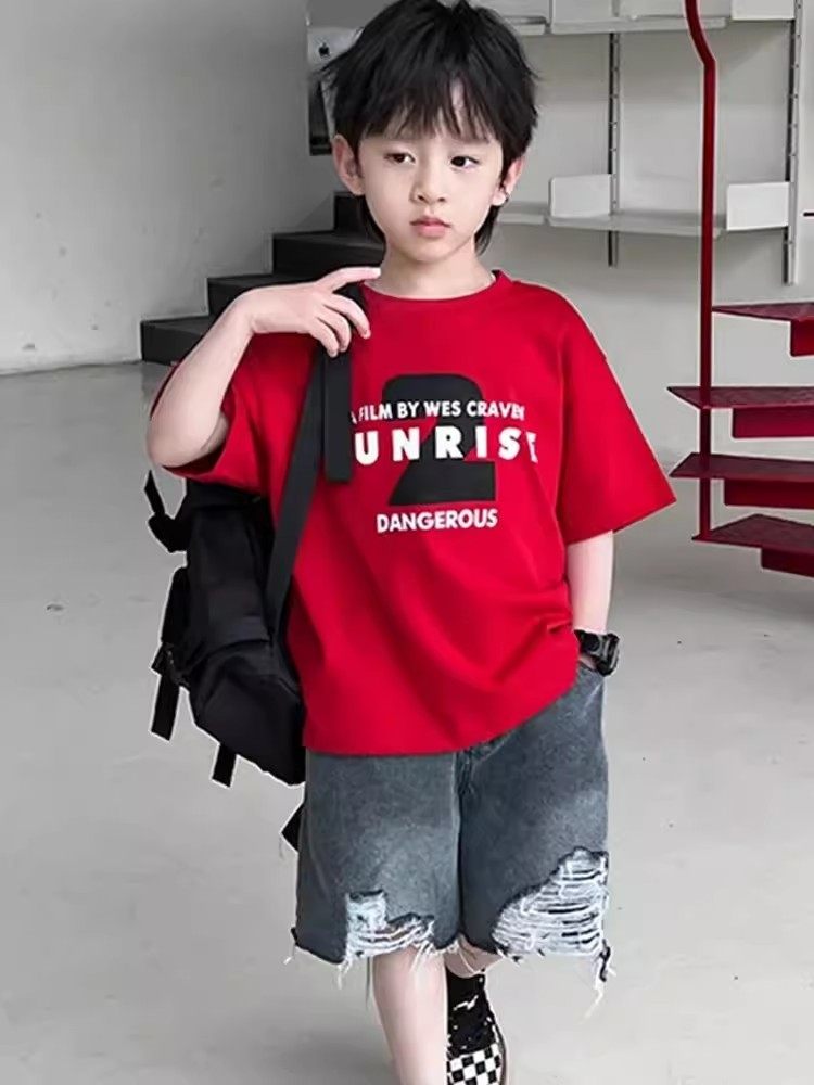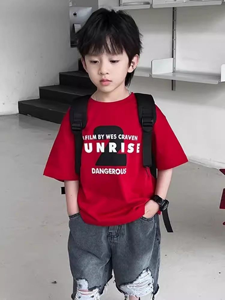 0-6岁男童洋气时尚圆领短袖T恤2026夏季中小儿童帅气休闲半袖上衣