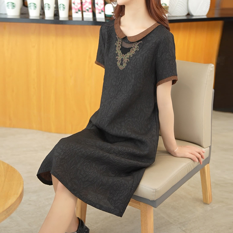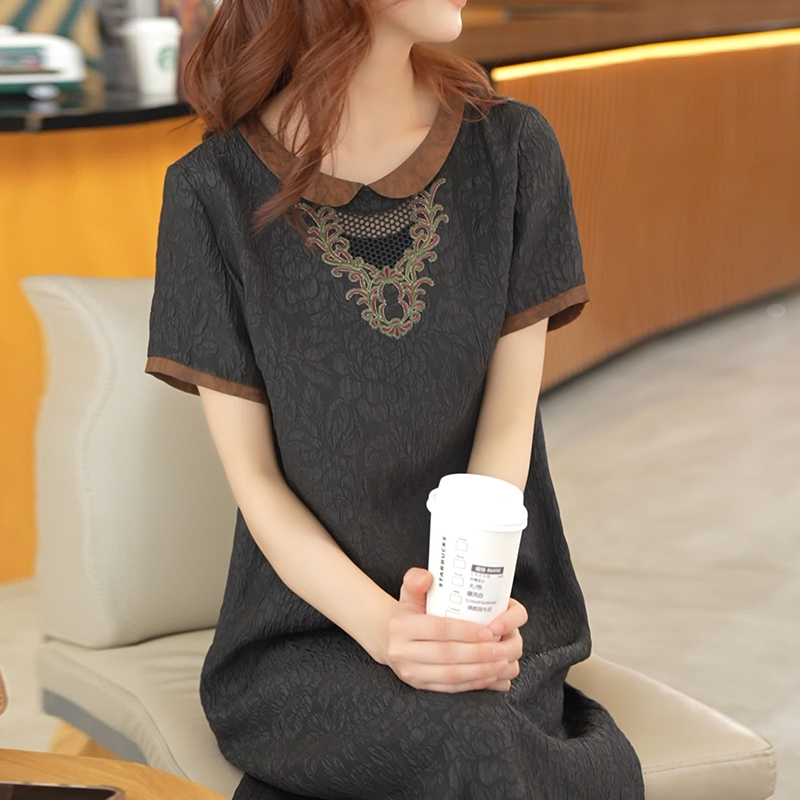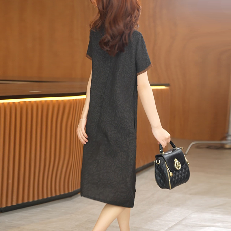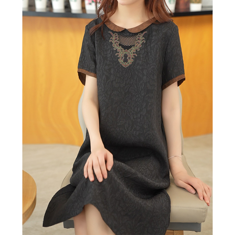 2023新款复古香云纱小个子中年妈妈桑蚕丝连衣裙杭州大牌丝绸真丝